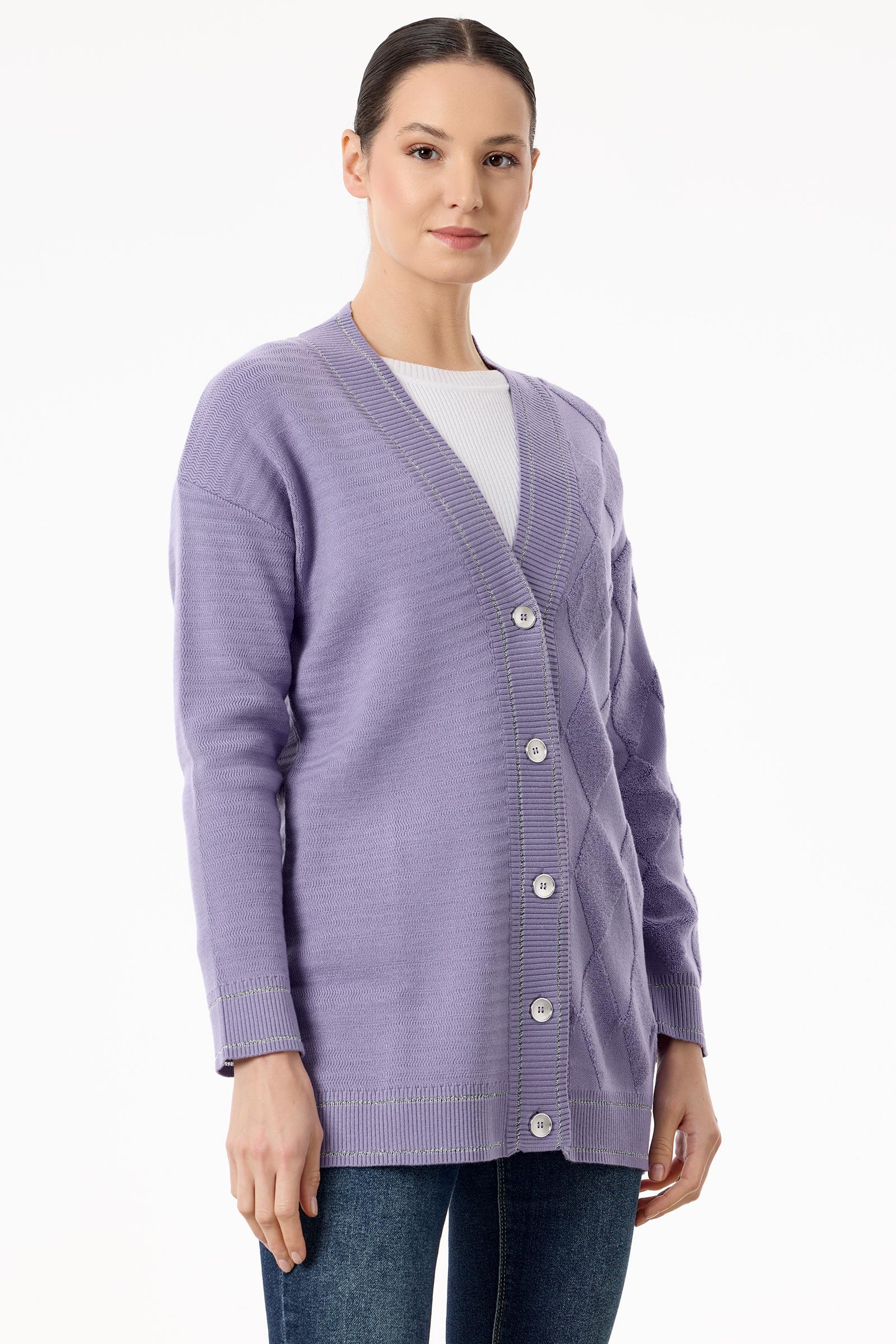 Baklava Deseni Havlu Örgülü Triko Hırka LİLA