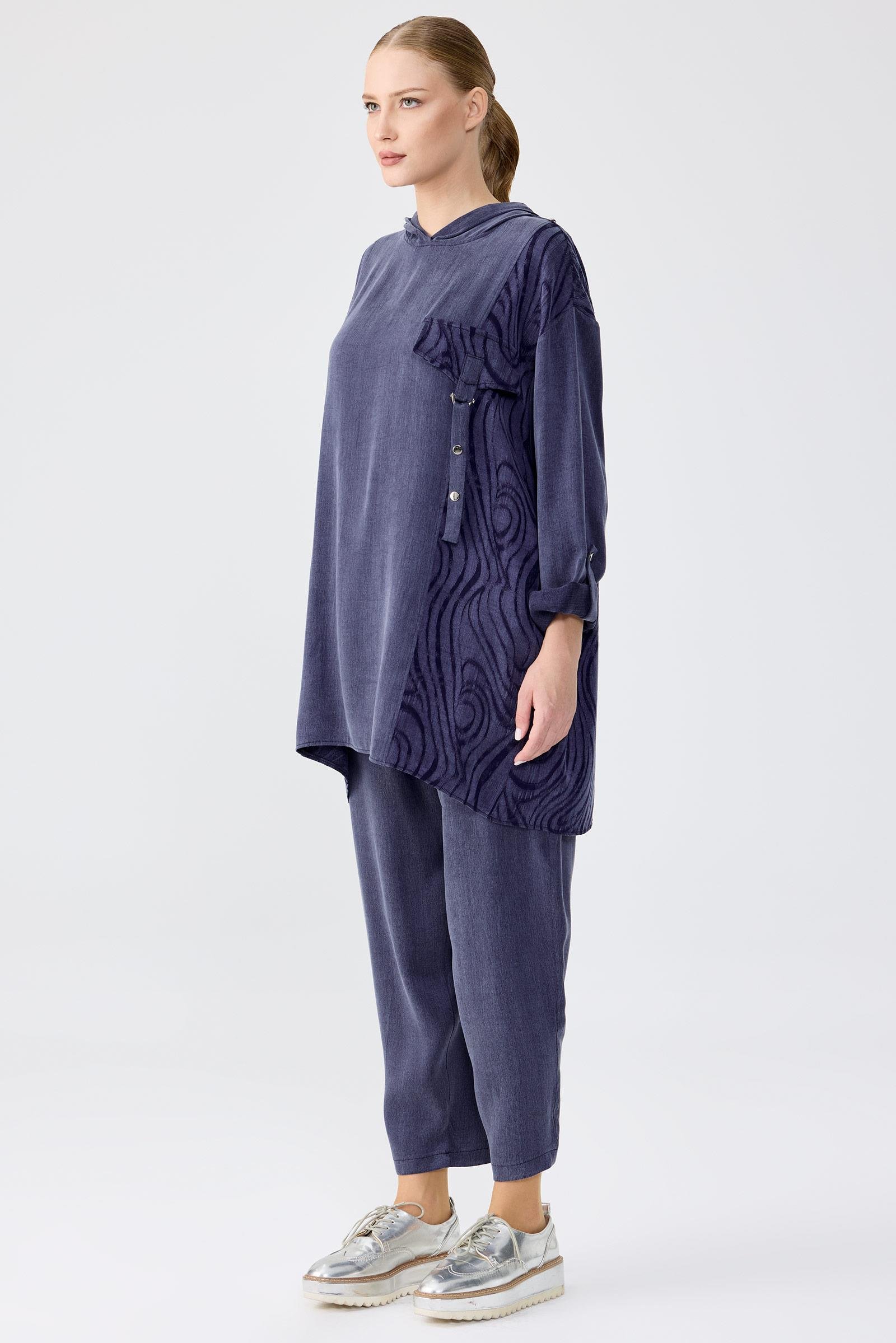 Cep Kapağı Detaylı Kapüşonlu Tunik Pantolon Takım LACİVERT