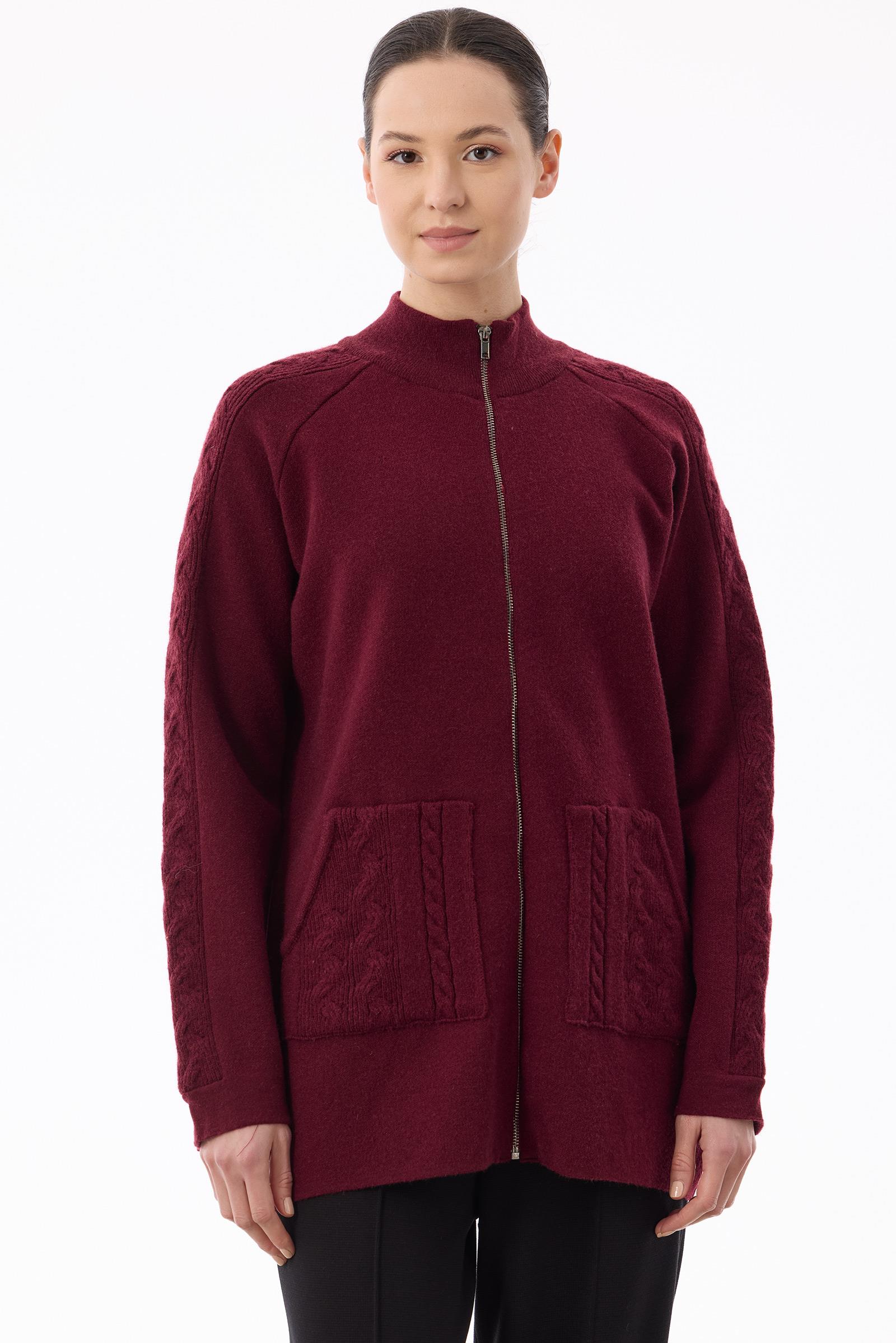 Cepleri Saç Örgülü Fermuarlı Hırka BORDO
