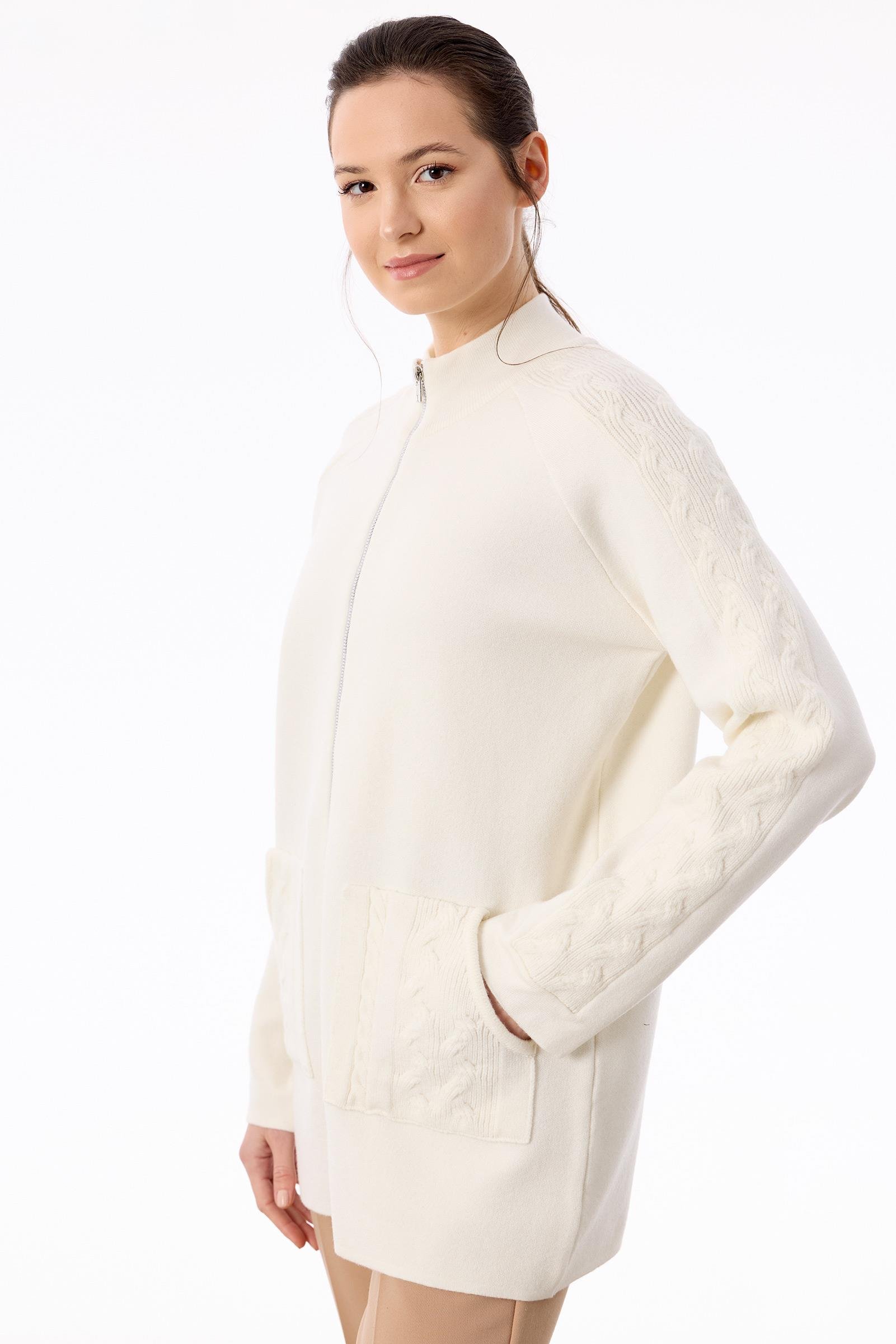 Cepleri Saç Örgülü Fermuarlı Hırka EKRU