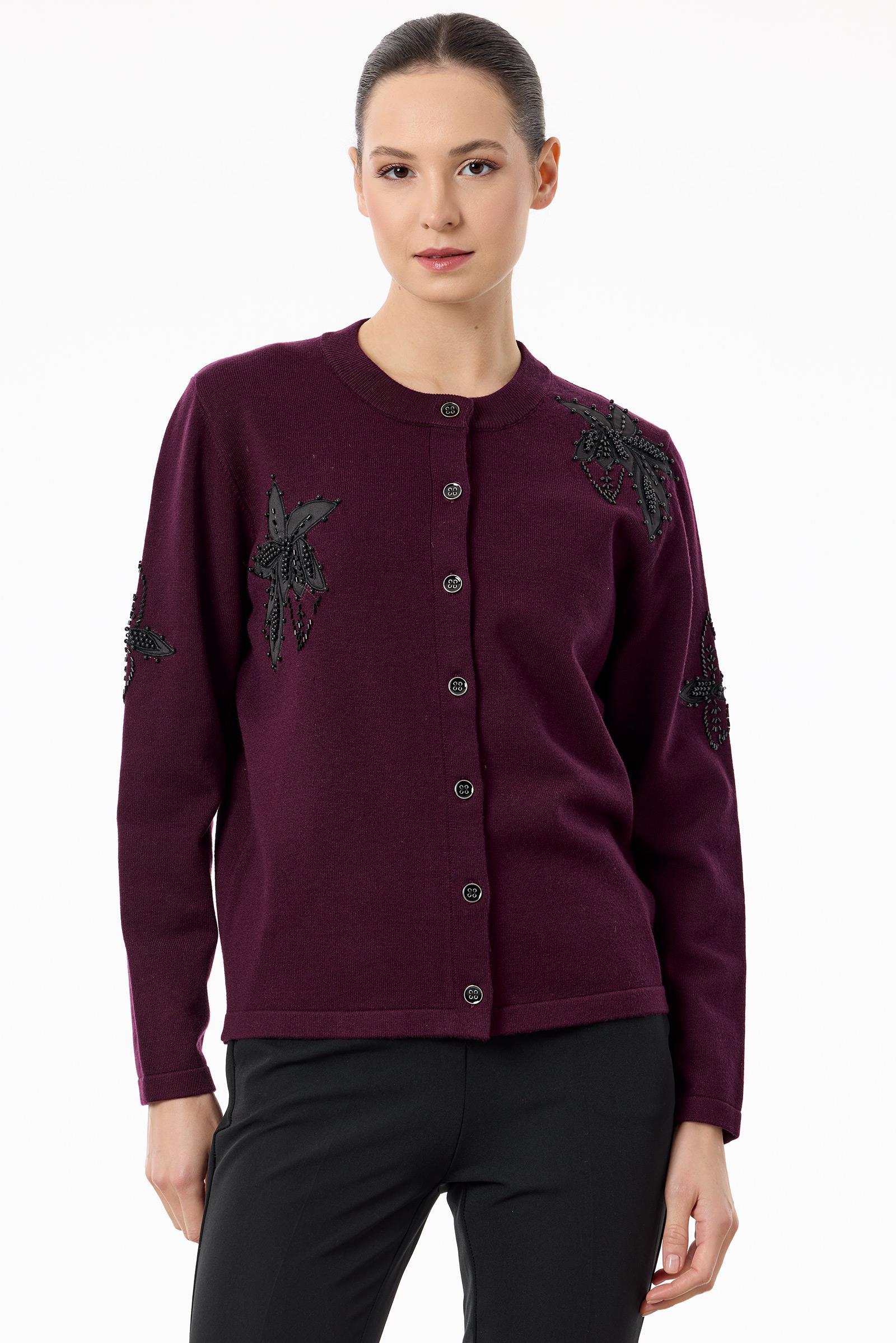 Çiçek Aplikeli Triko Hırka KIRMIZI