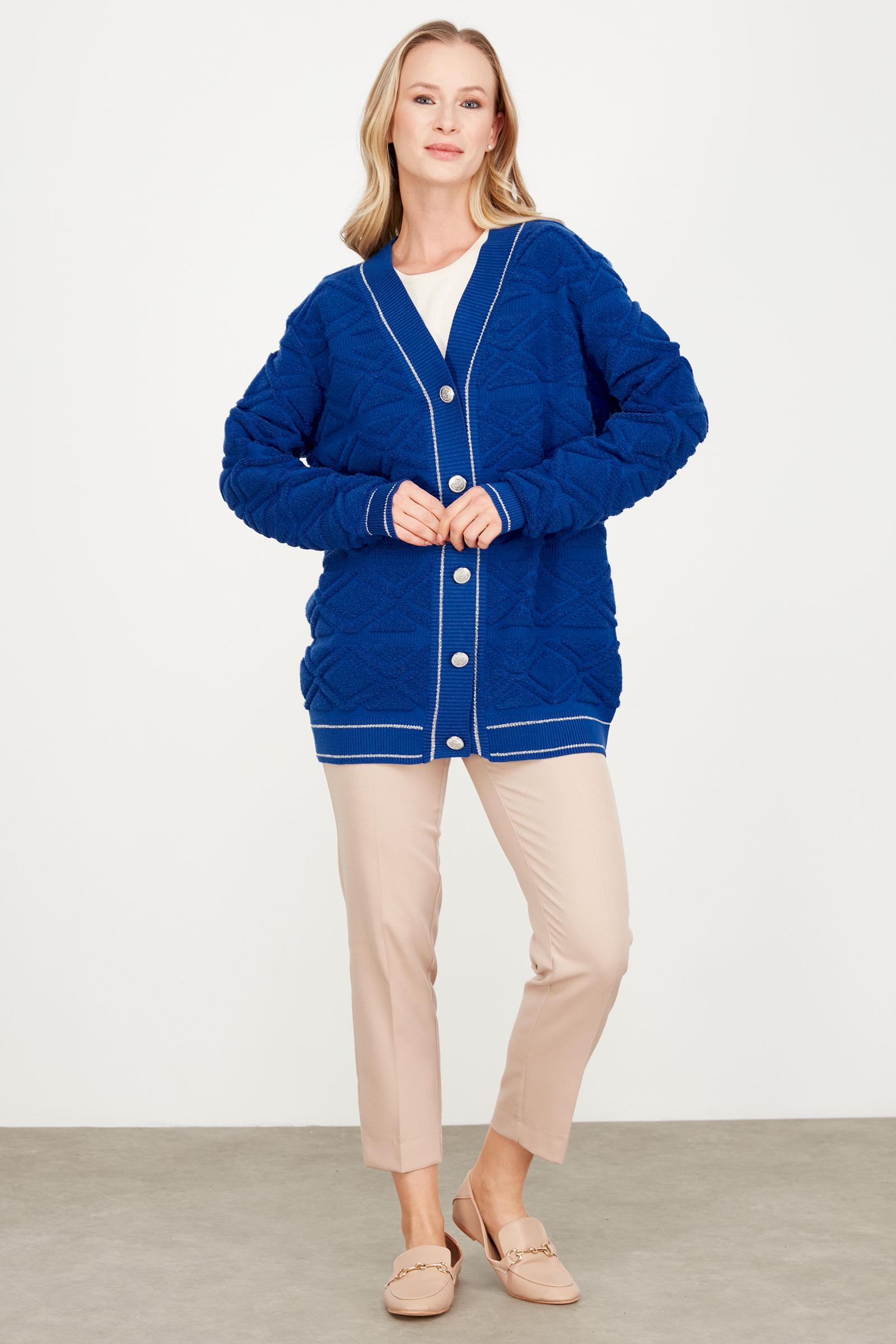 Havlu Örgü Detaylı Düğmeli Triko Hırka SAKS