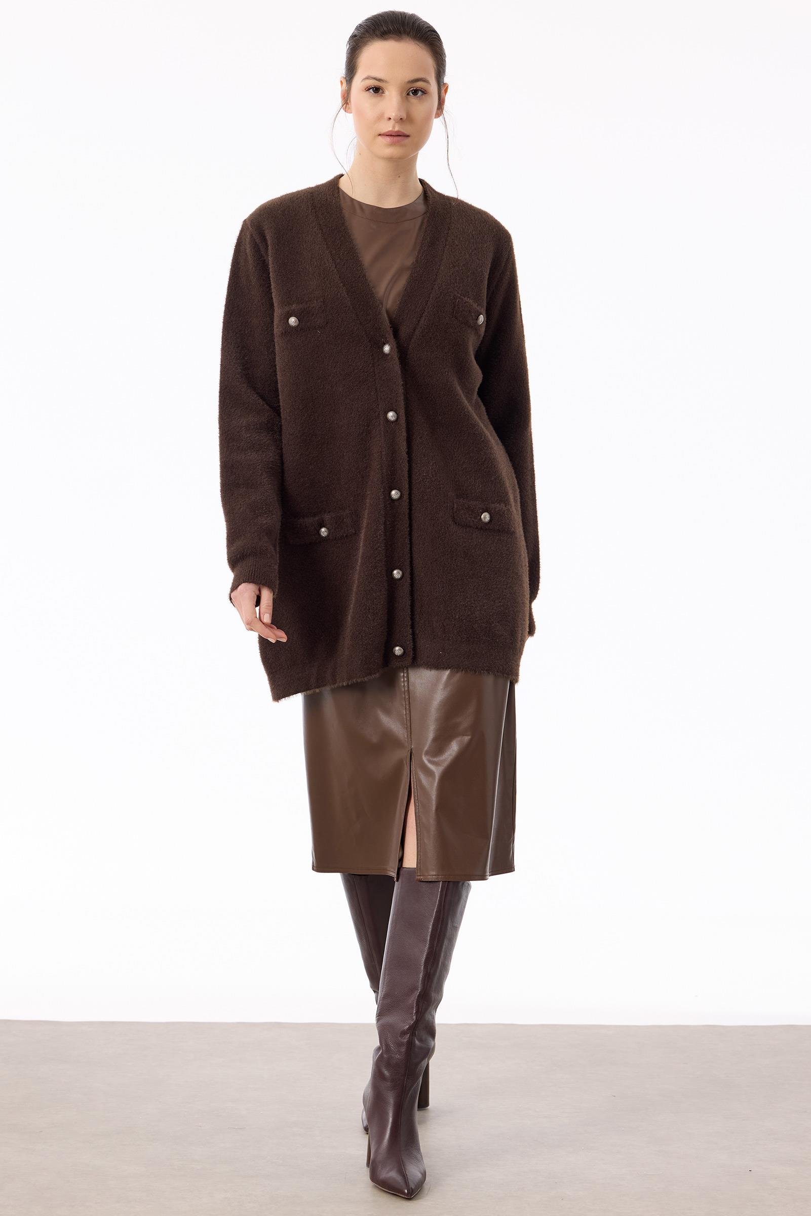 İnci Düğmeli Triko Hırka ACI KAHVE