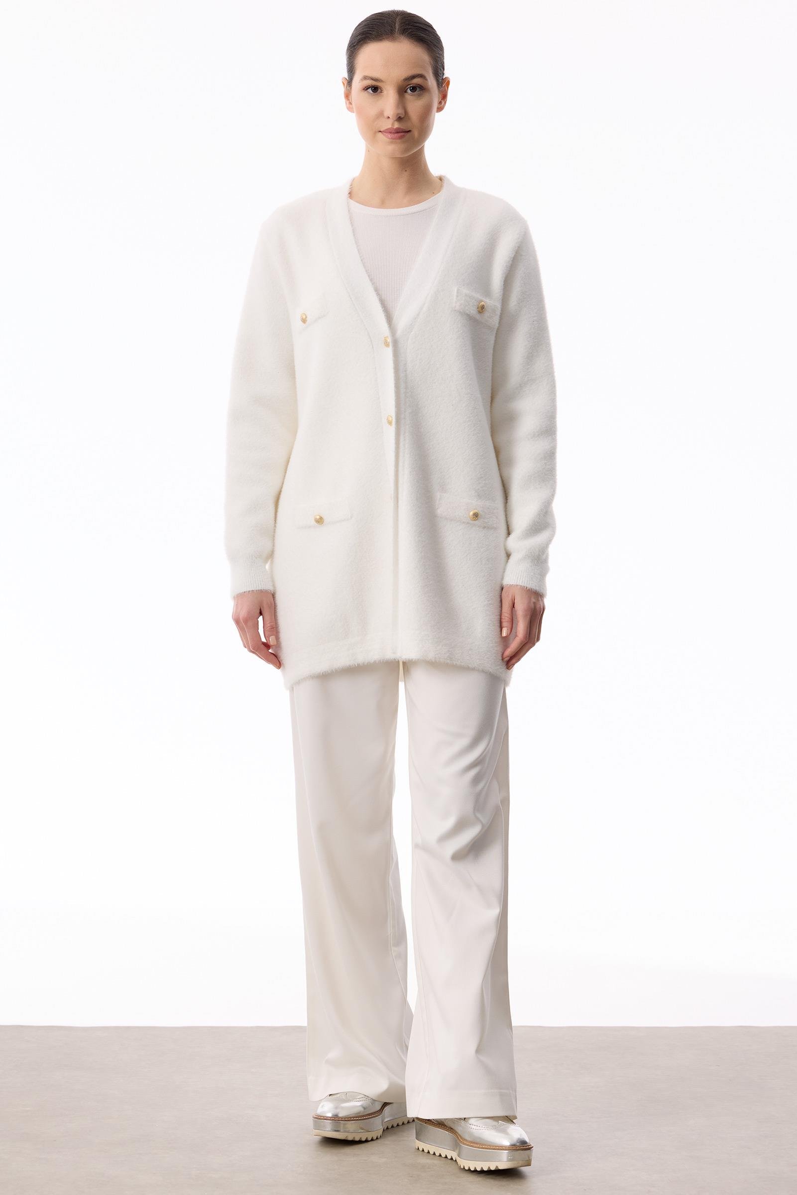 İnci Düğmeli Triko Hırka EKRU