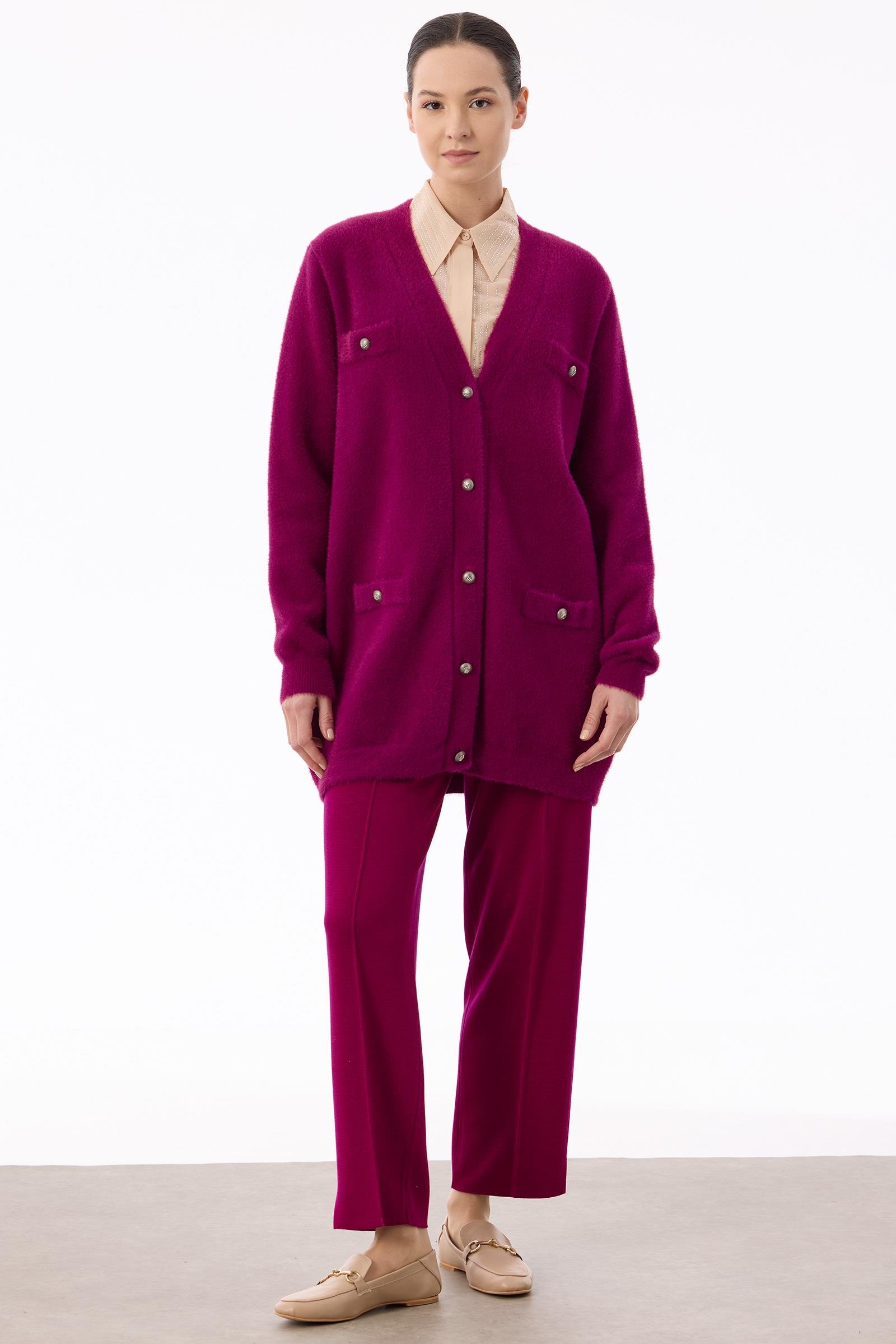 İnci Düğmeli Triko Hırka FUŞYA