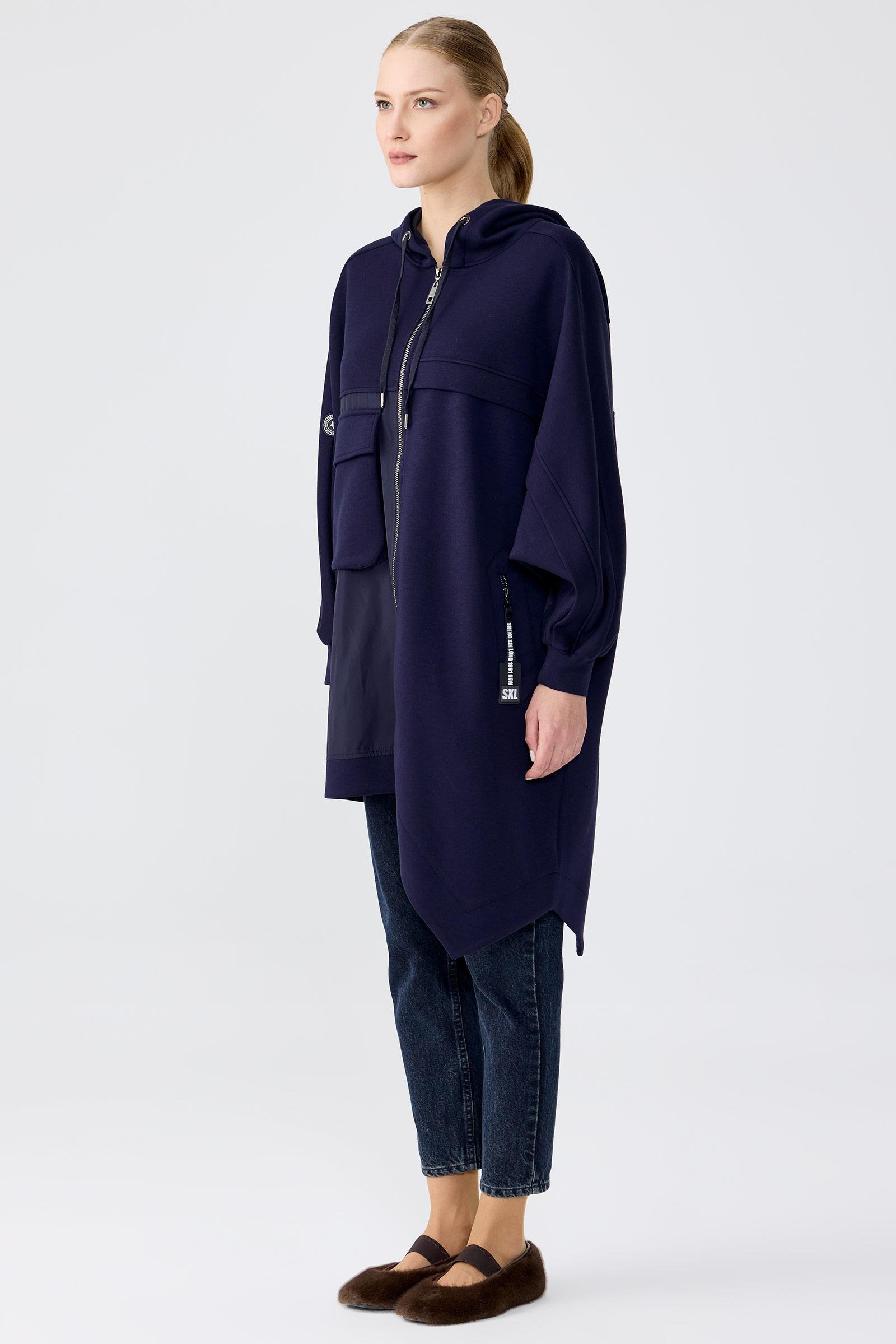 Kapuşonlu Önden Fermuarlı Asimetrik Kap LACİVERT