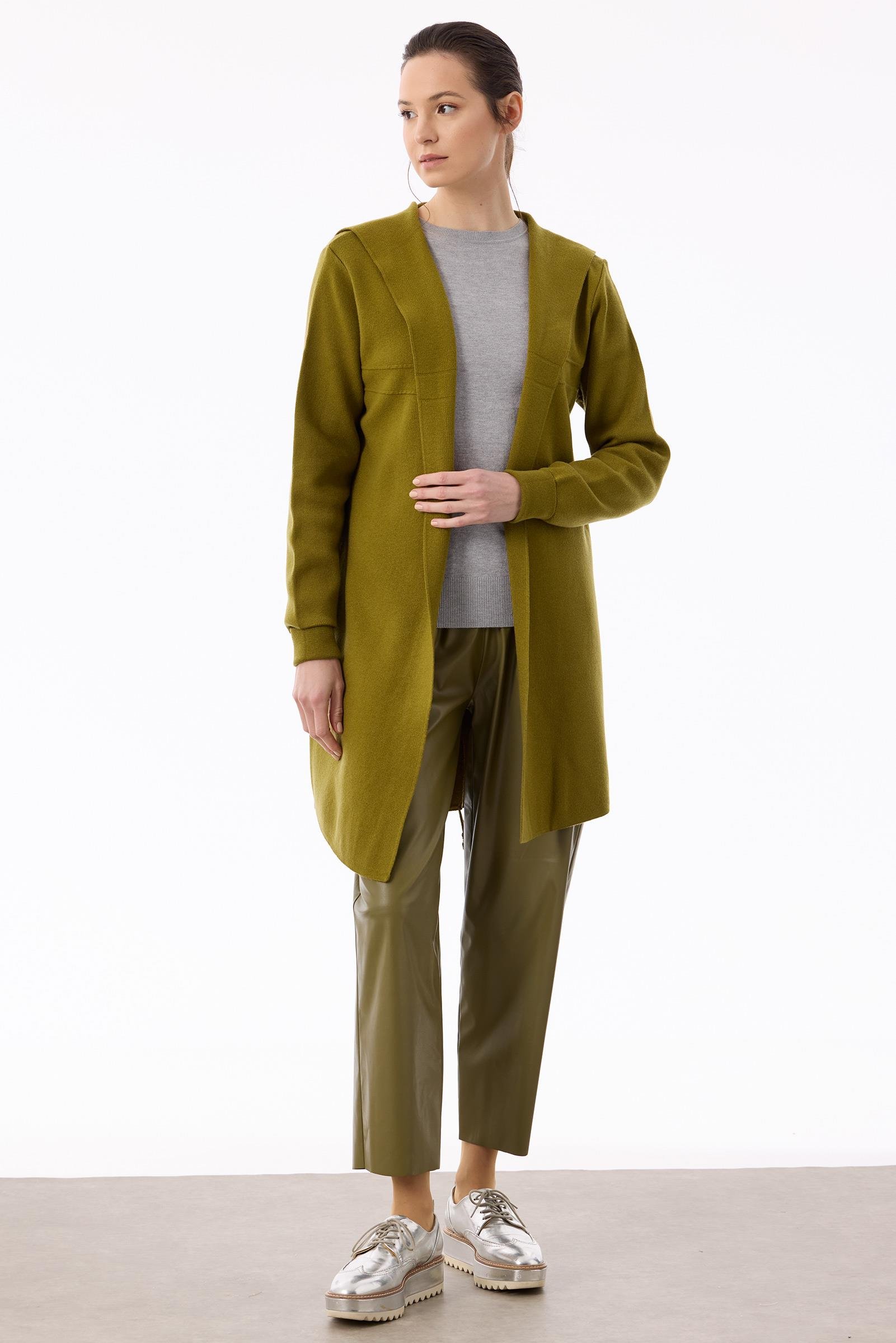 Kapüşonlu Triko Hırka LIME