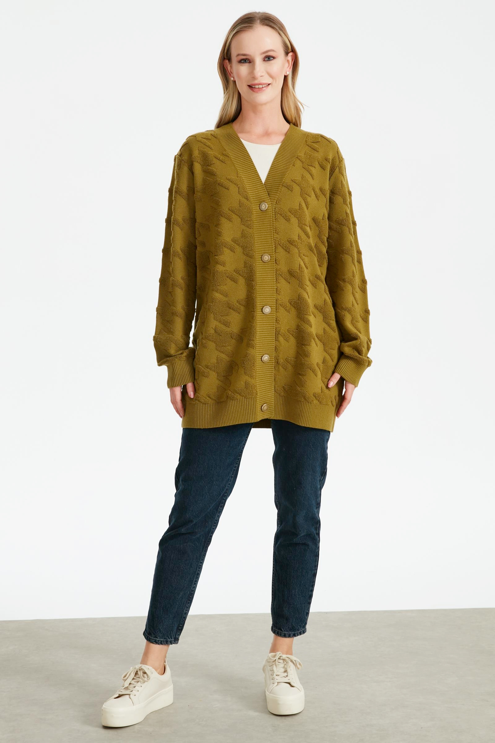 Kazayakları Havlu Örgülü Triko Hırka OLİVE