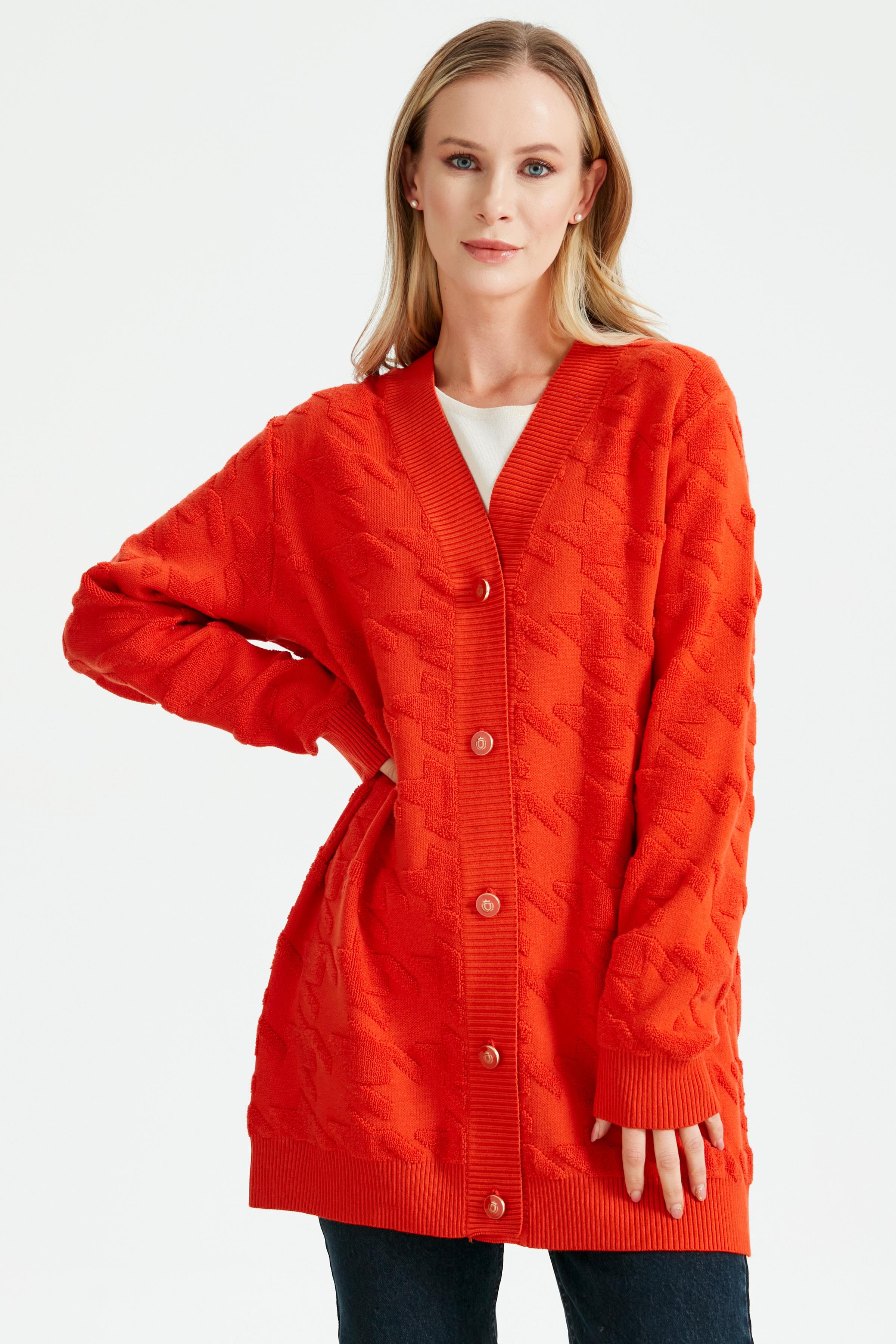 Kazayakları Havlu Örgülü Triko Hırka ORANJ