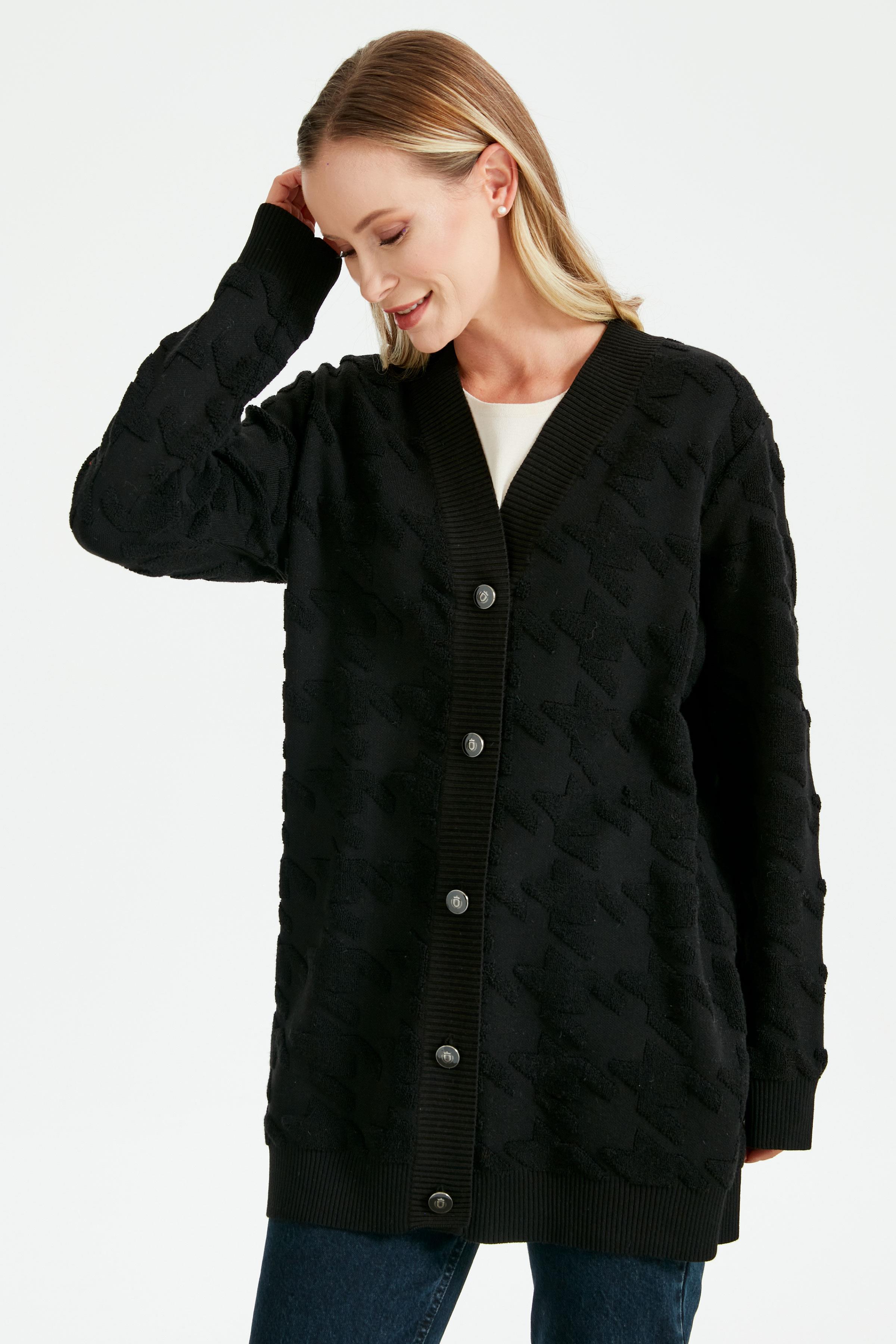 Kazayakları Havlu Örgülü Triko Hırka SİYAH