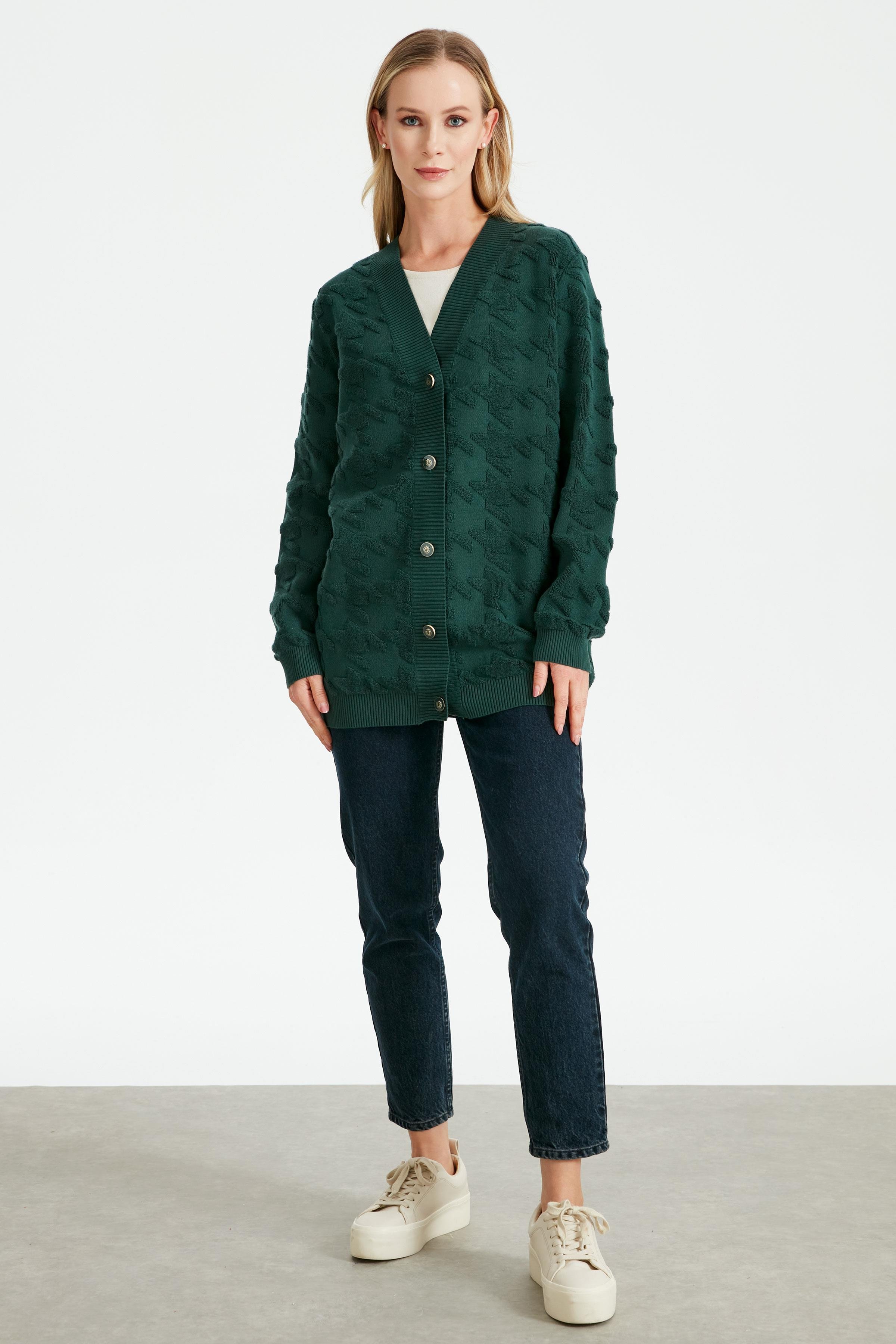 Kazayakları Havlu Örgülü Triko Hırka ZÜMRÜT