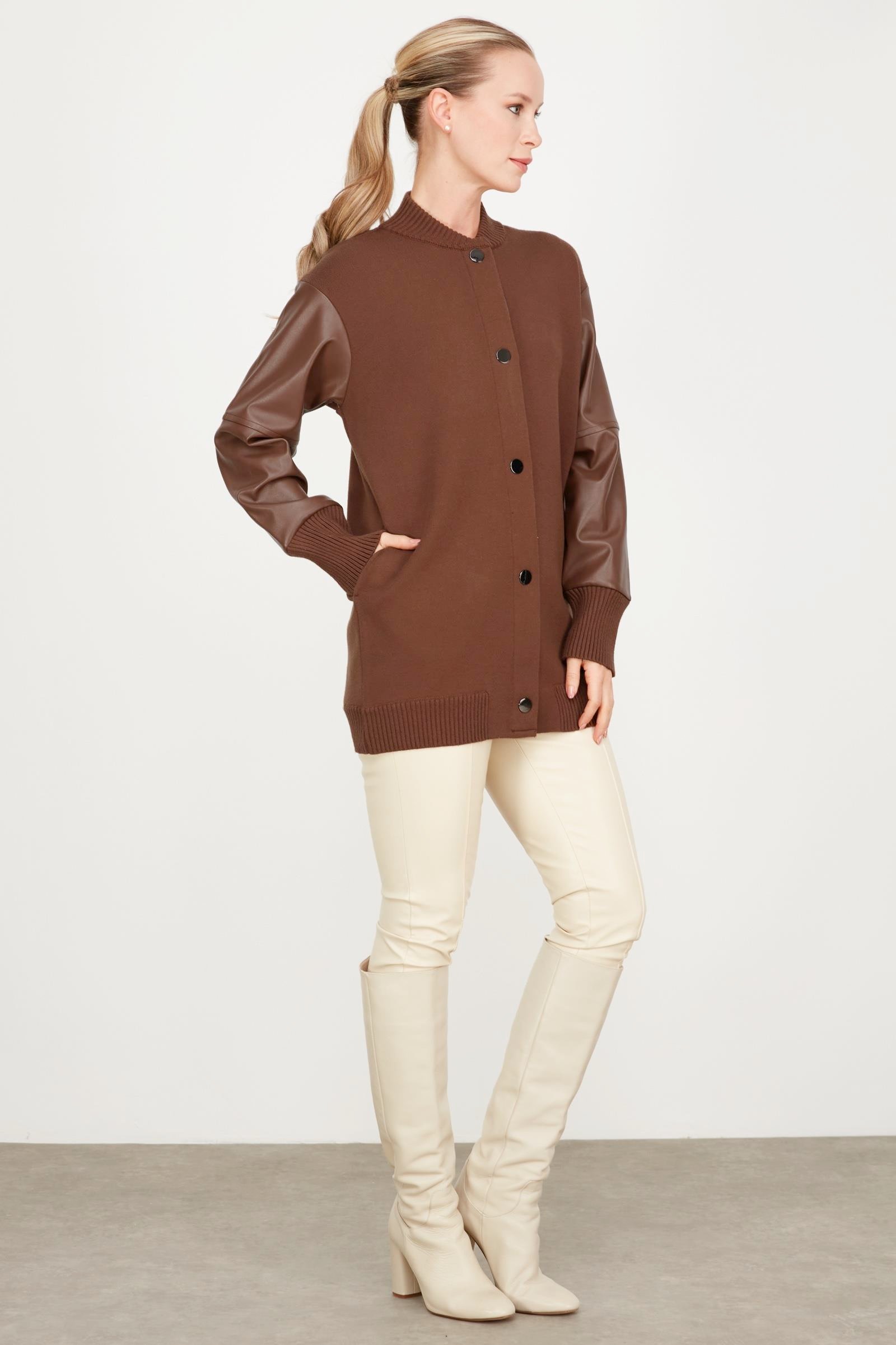 Kolları Deri Garnili Triko Bomber Ceket KAHVE