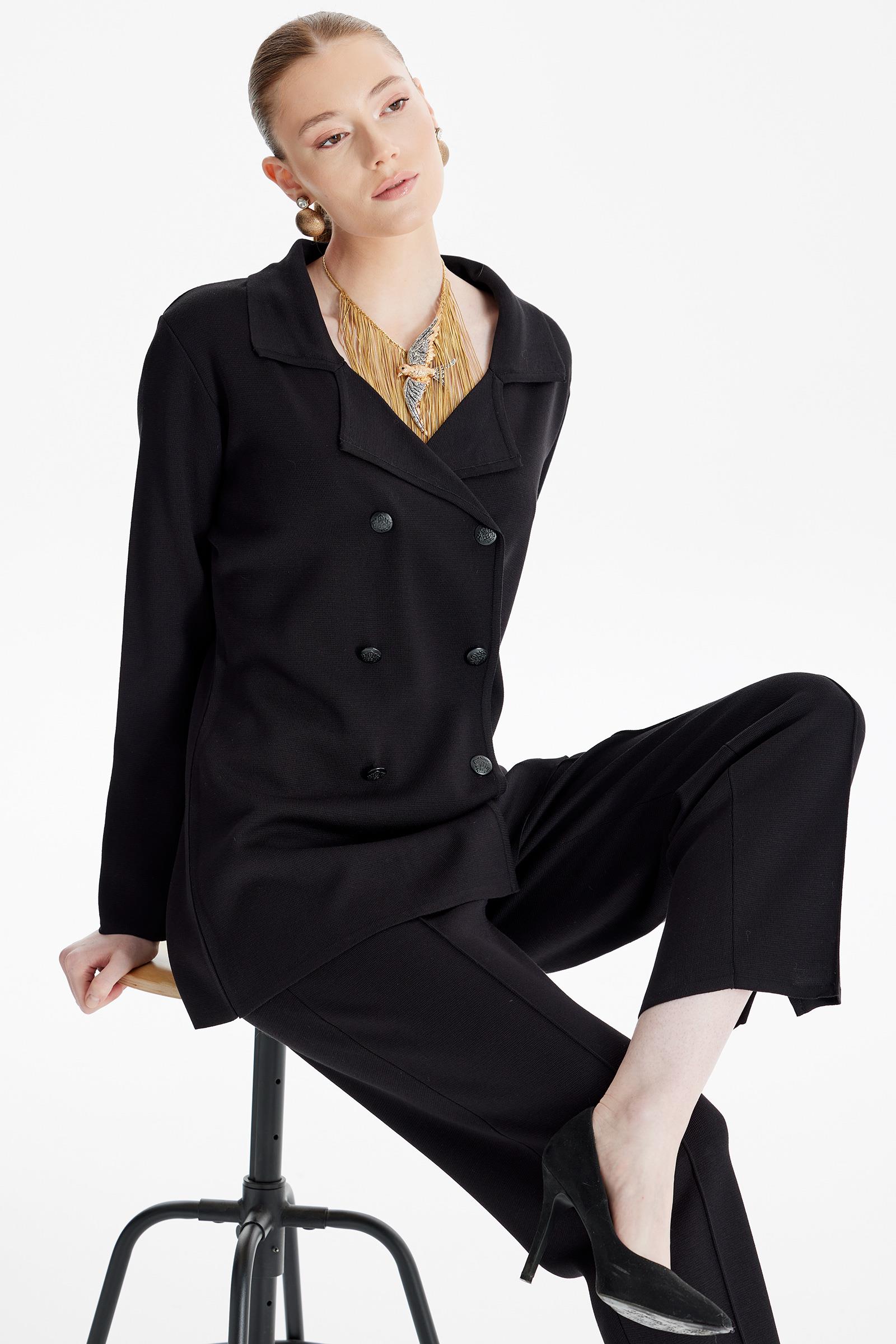 Kruvaze Ceket Pantolon Triko Takım SİYAH (TKM.21594.1)