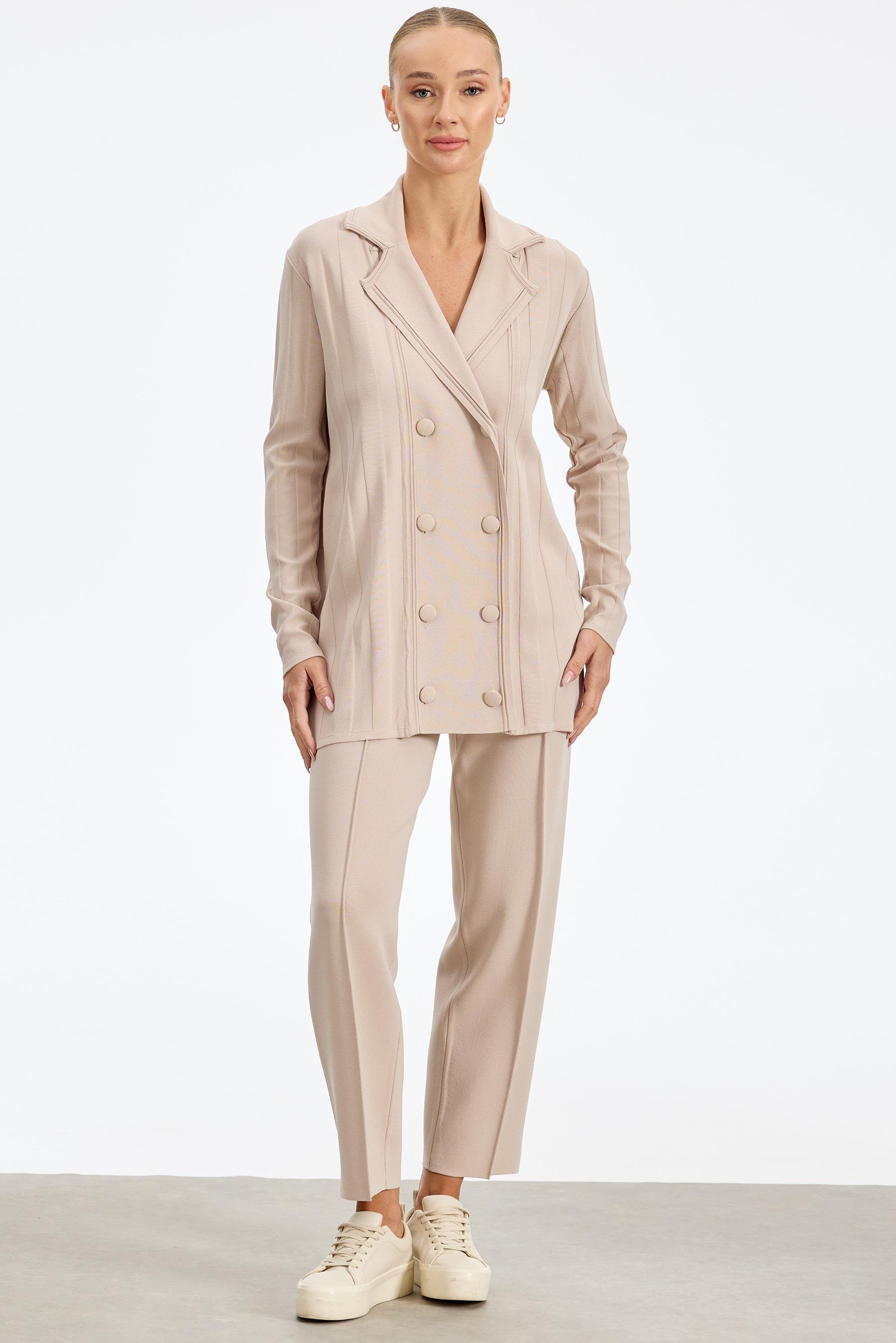 Kruvaze Düğmeli Rayon Takım BEJ (TKM.21694.1)