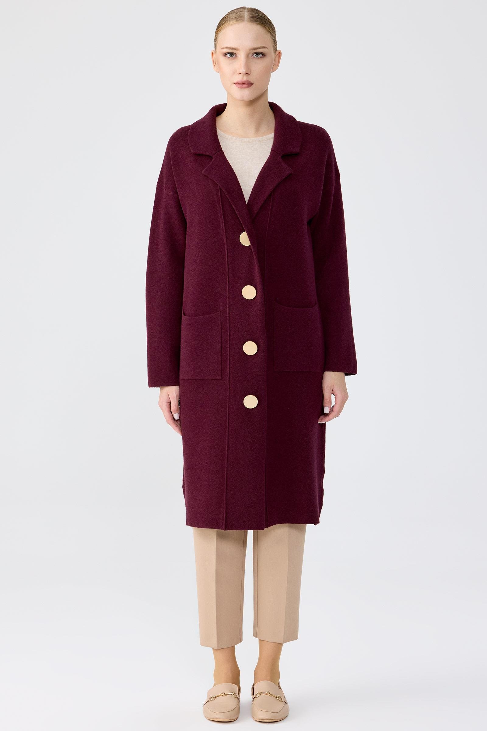Kruvaze Yaka Gold Düğmeli Triko Hırka BORDO