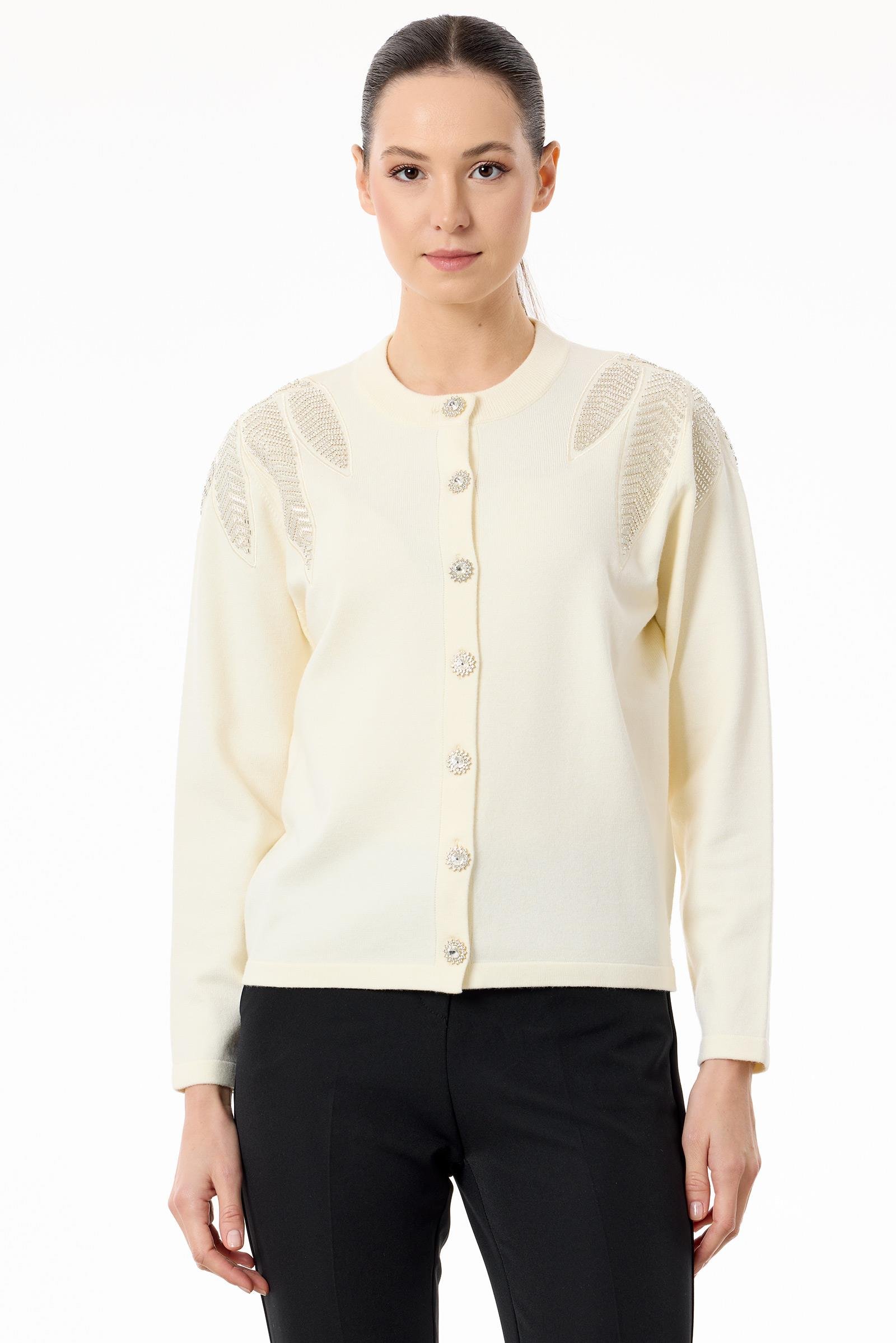 Omuzları Taşlı Kısa Triko Hırka EKRU