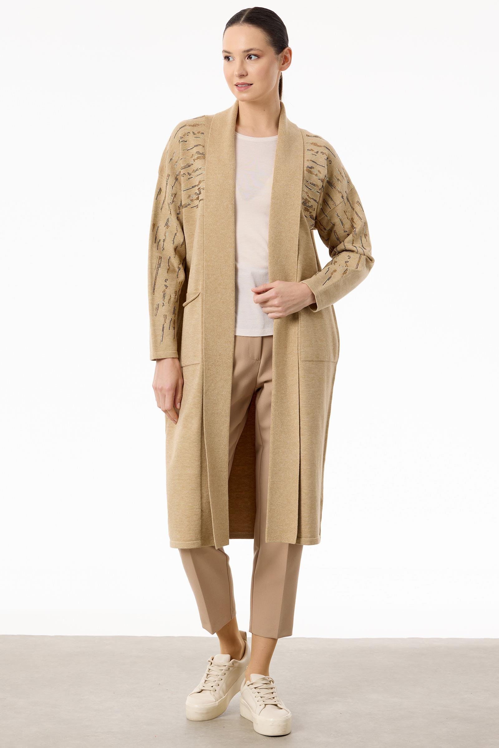 Omuzları Taşlı Şal Yakalı Triko Hırka HAKİ