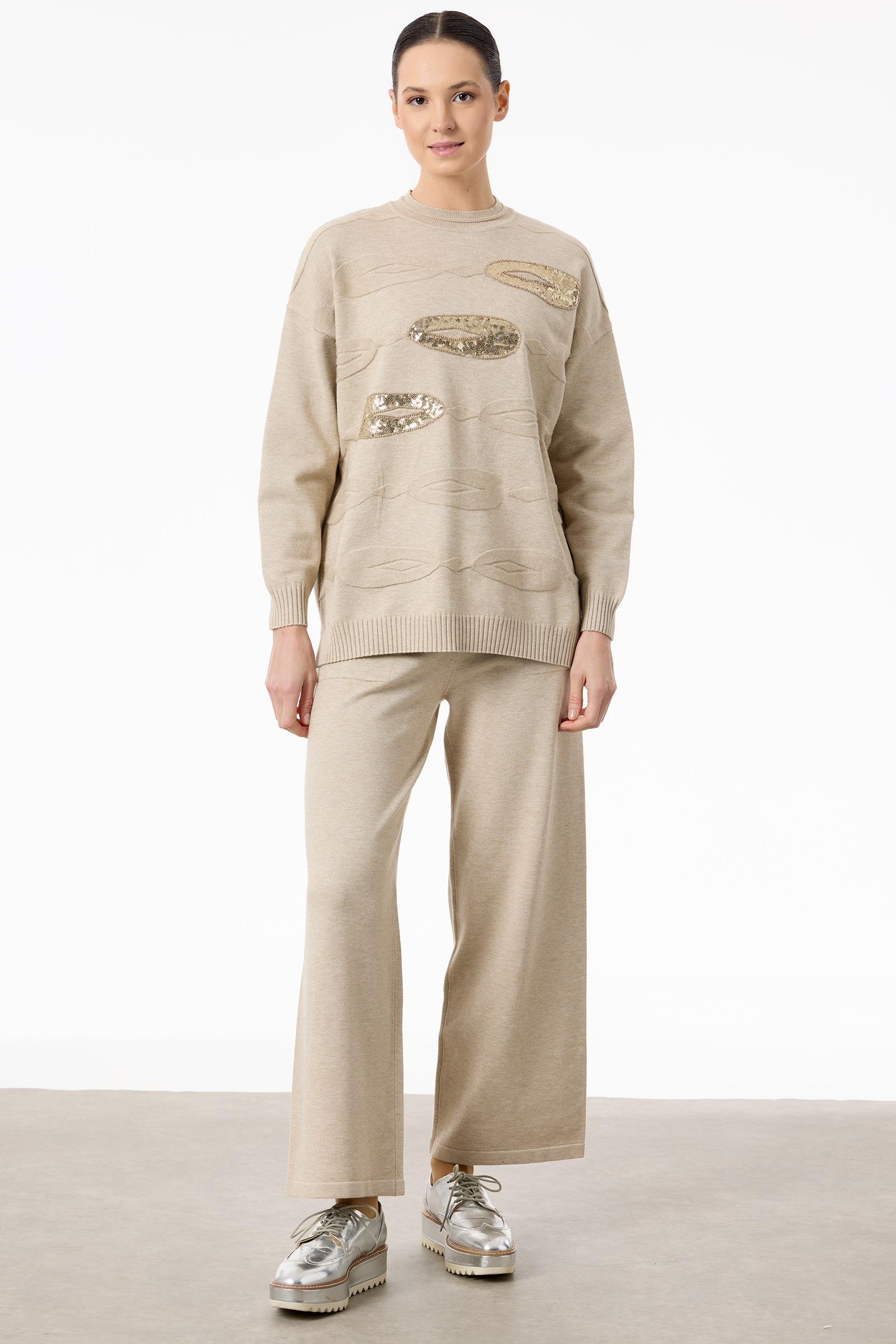 Önü Payet Detaylı Pantolonlu Triko Takım BEJ (TKM.21750.1)