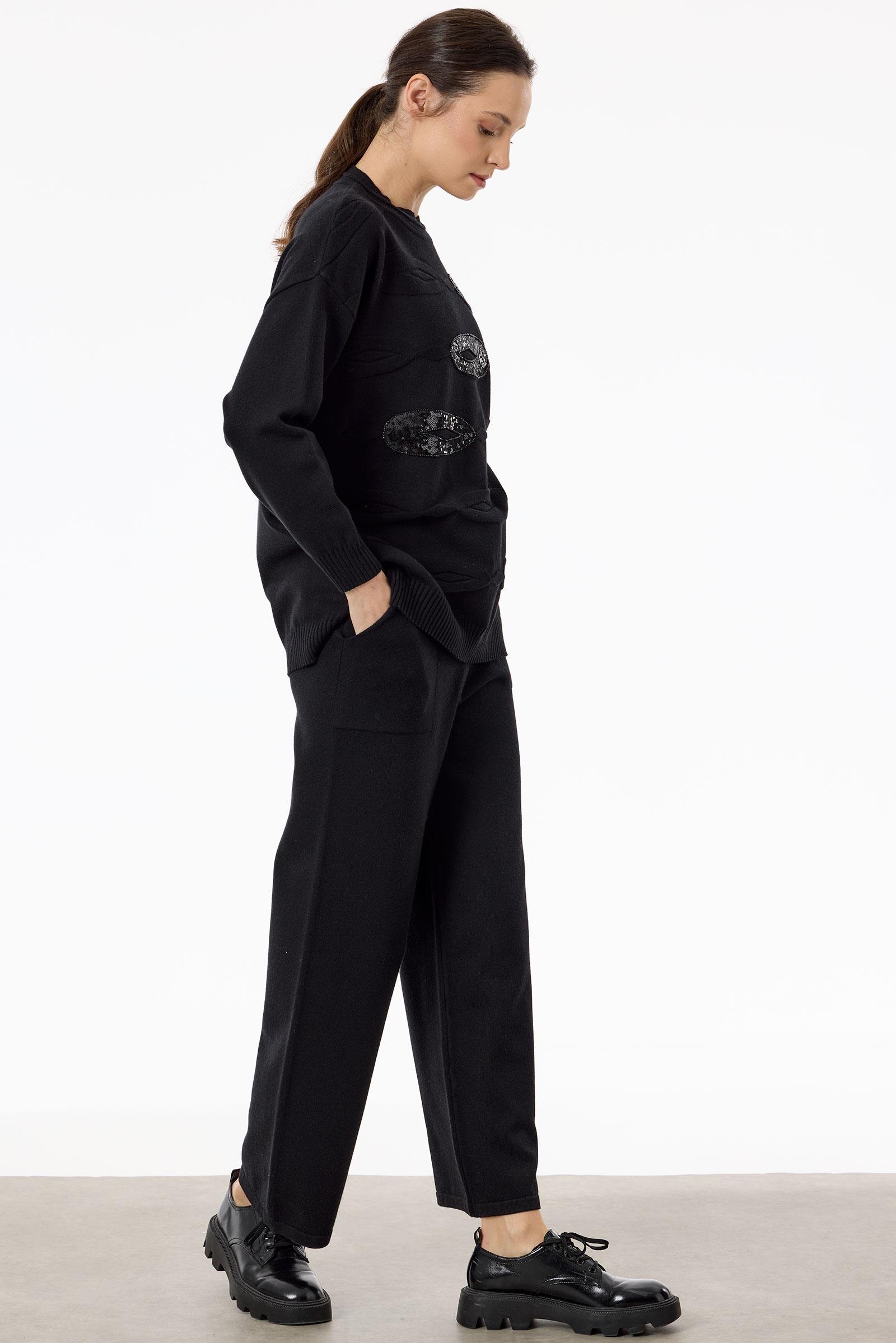 Önü Payet Detaylı Pantolonlu Triko Takım SİYAH (TKM.21750.1)
