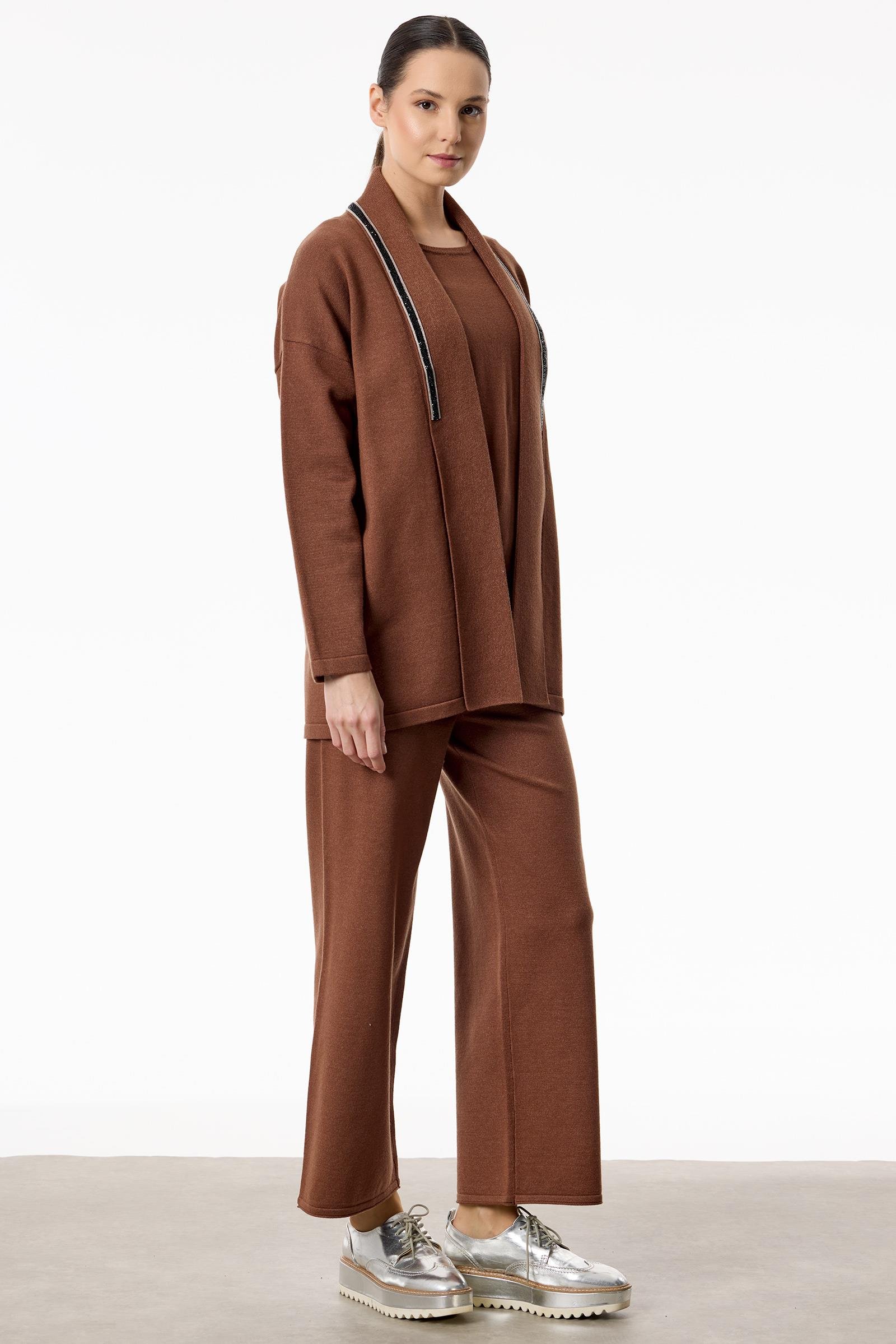 Önü Taş Şeritli 3'lü Triko Takım KAHVE (TKM.21743.1)