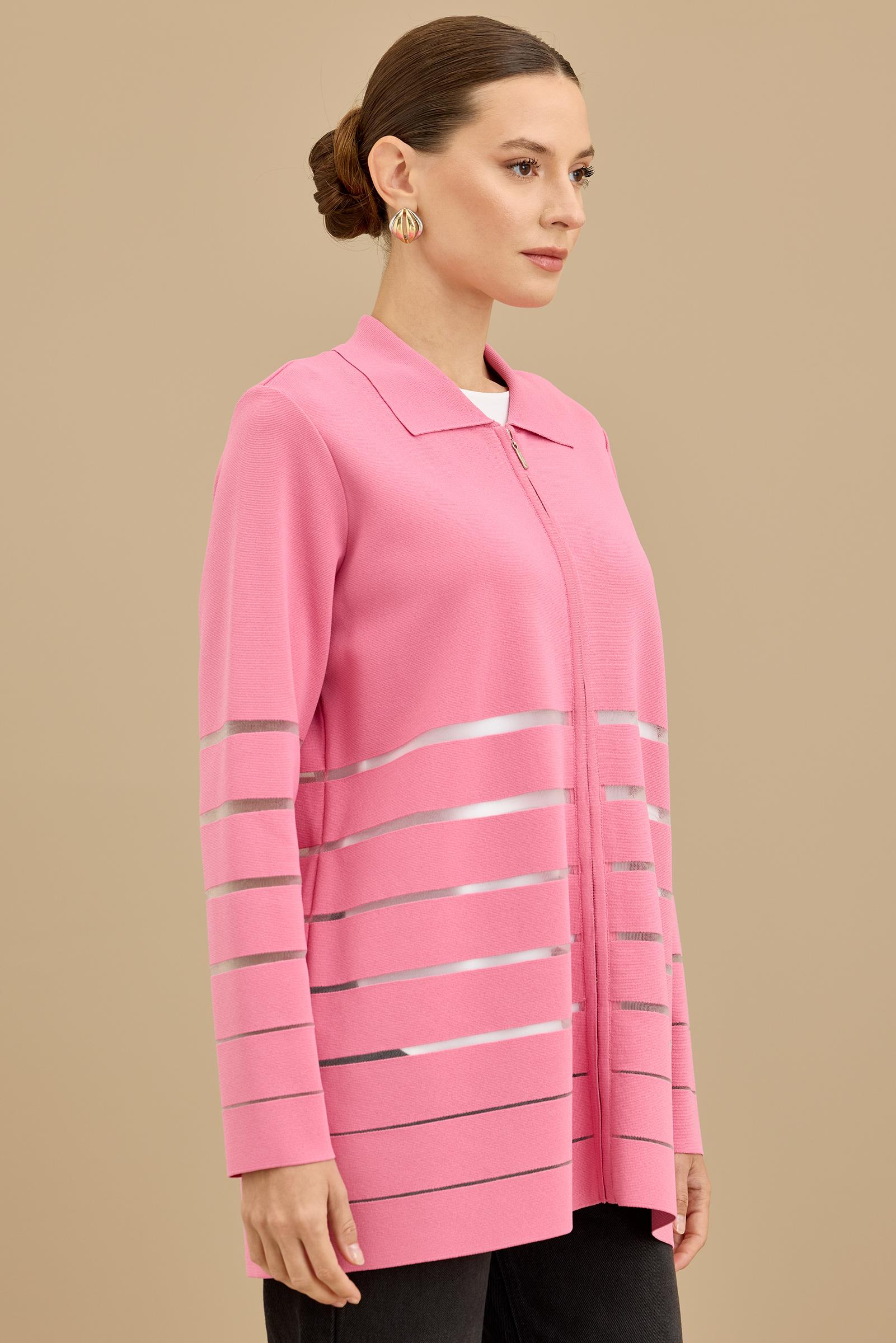 Örgü Detaylı Triko Rayon Hırka PEMBE
