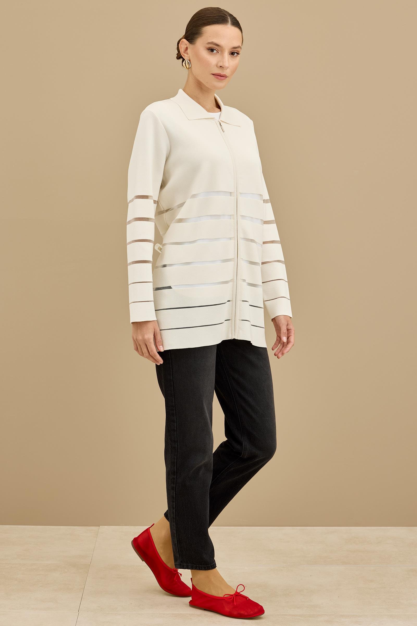 Örgü Detaylı Triko Rayon Hırka VANİLLA