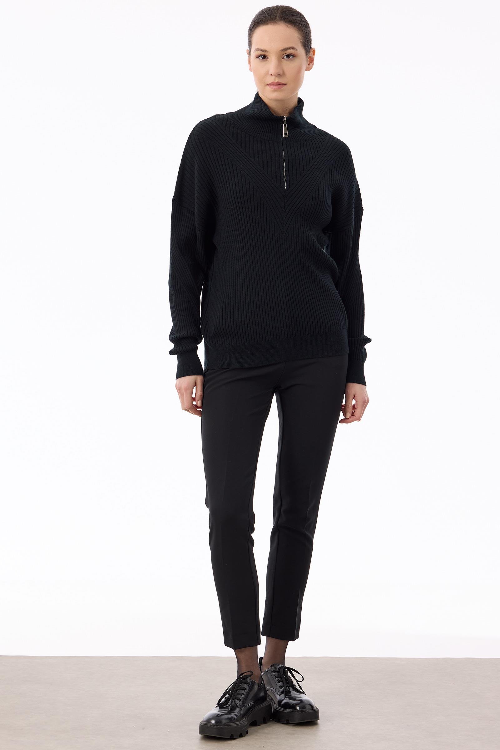 Örgü Detaylı Yüksek Yakalı Triko Bluz SİYAH