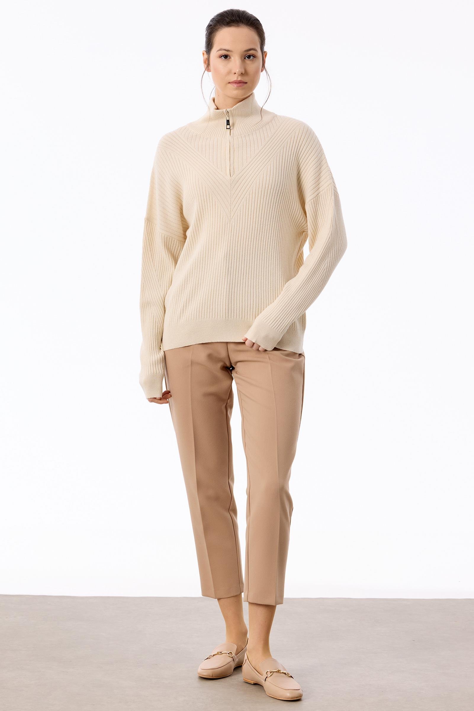 Örgü Detaylı Yüksek Yakalı Triko Bluz VANİLYA