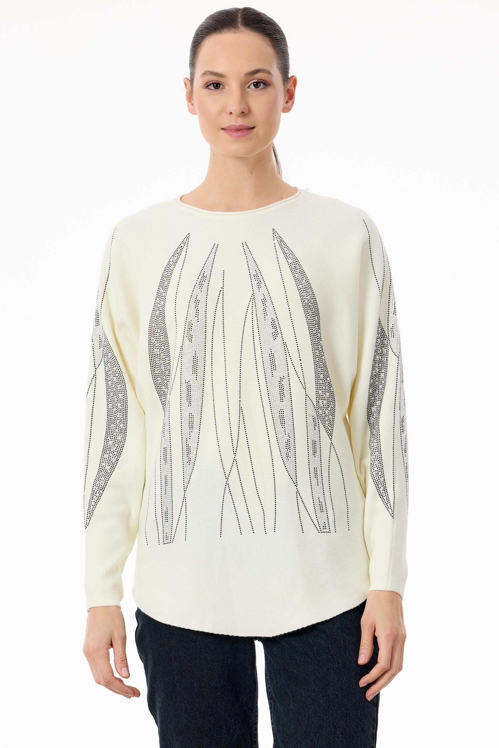 Payetli Sosis Yakalı Triko Bluz EKRU