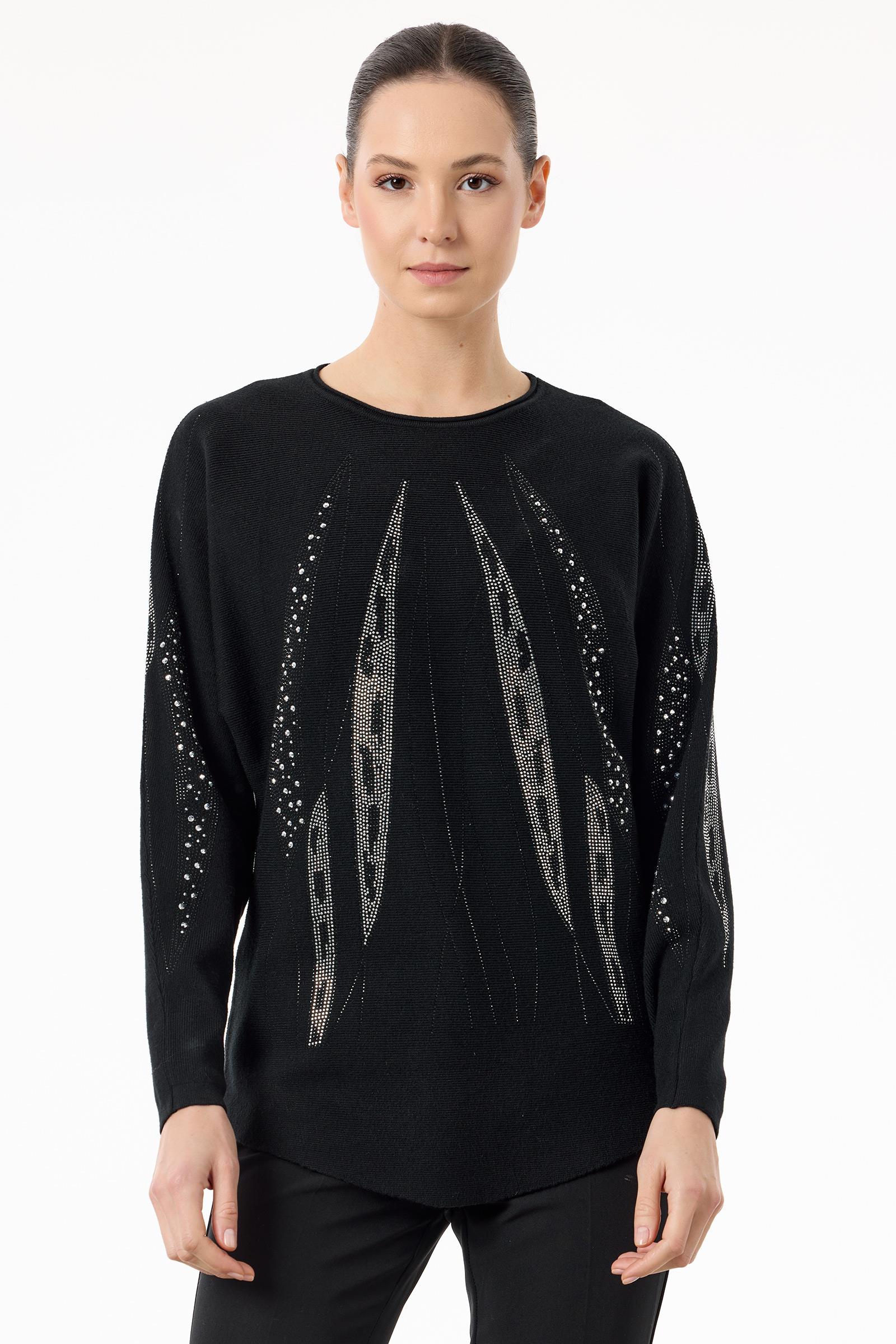Payetli Sosis Yakalı Triko Bluz SİYAH