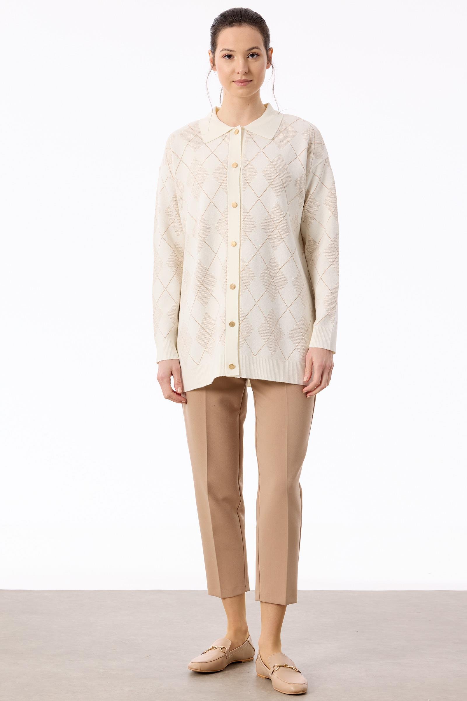Polo Yakalı Triko Hırka EKRU