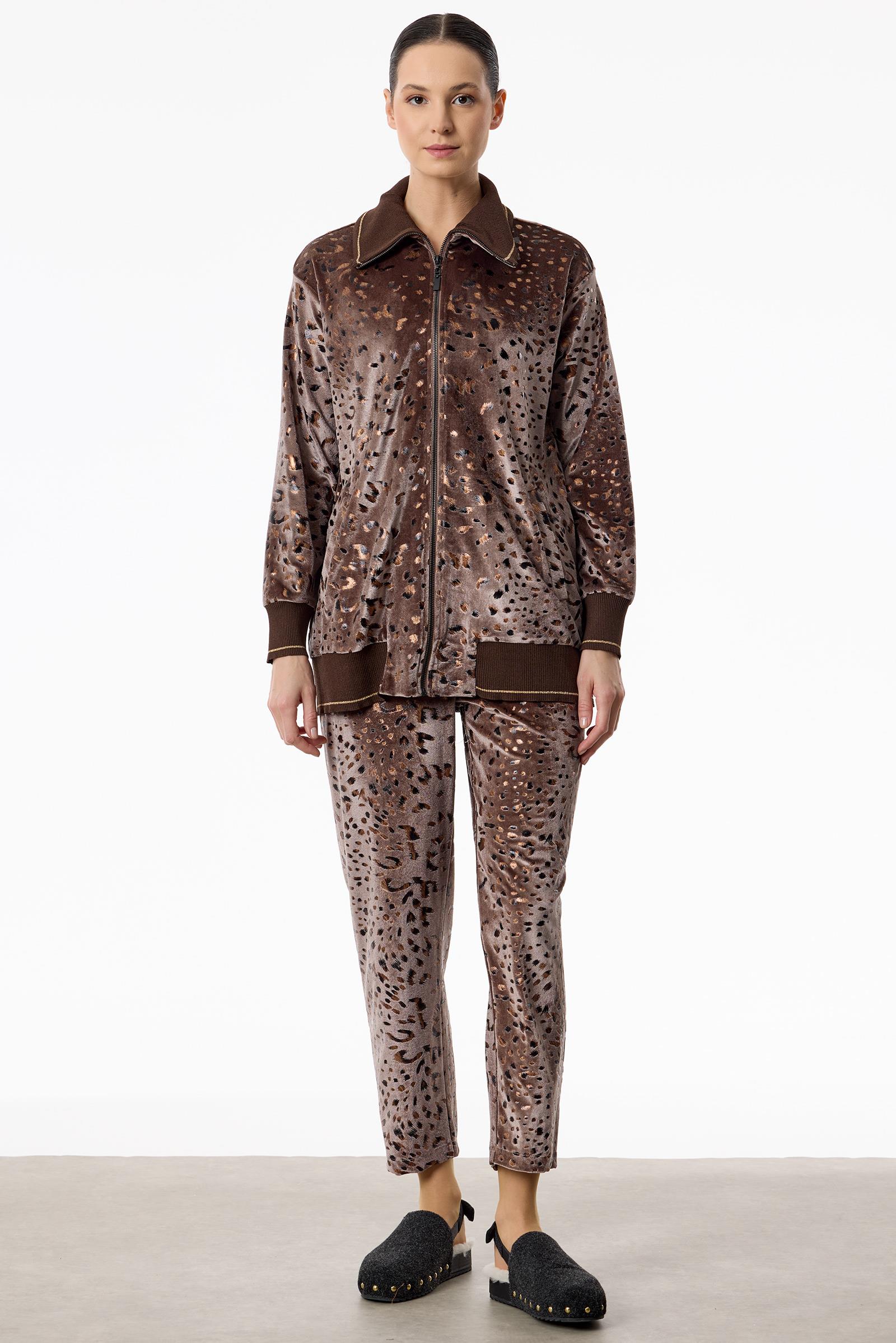 Ribana Detaylı Leopar Desenli Takım VİZON (TKM.2023.01)