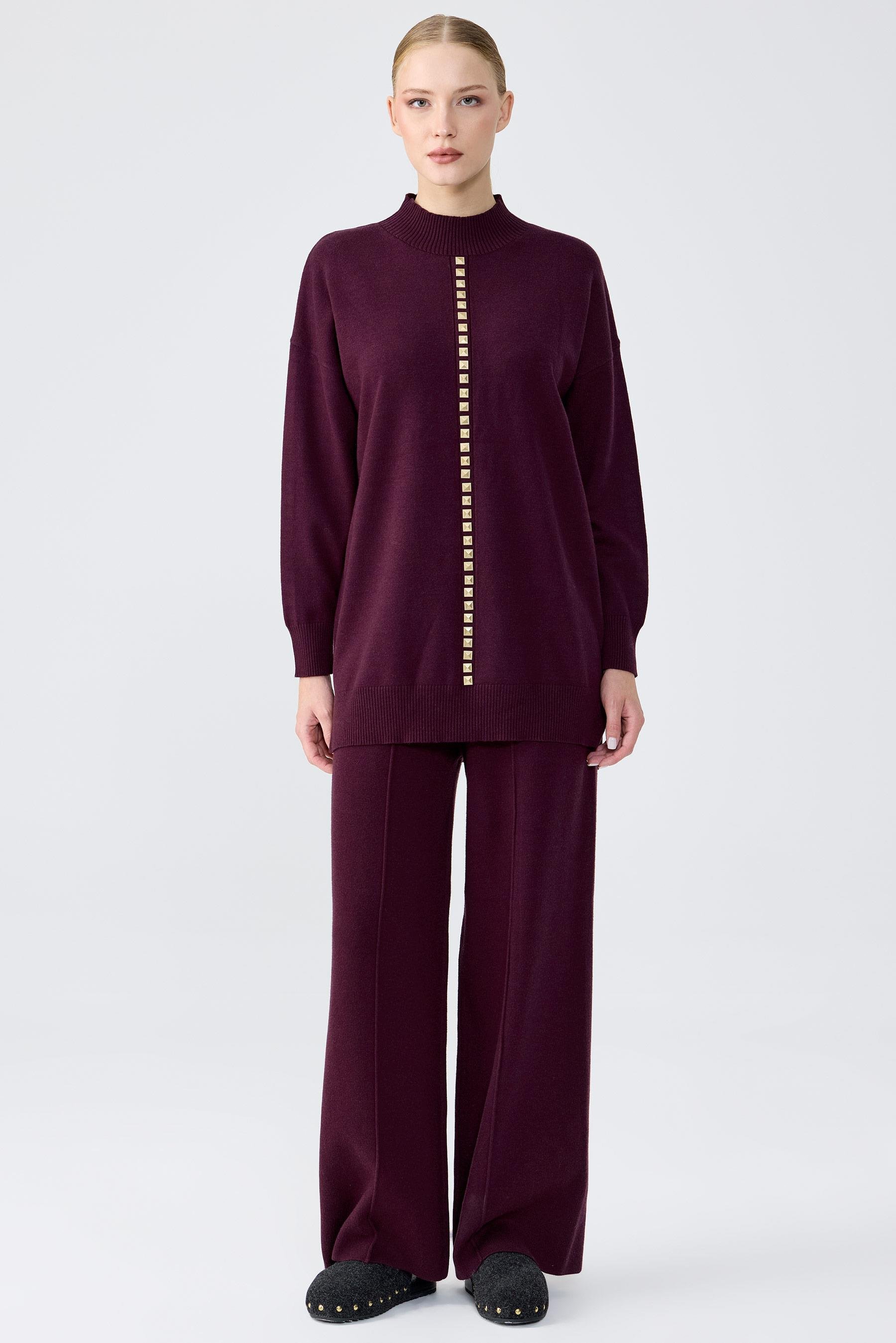 Şerit Taş İşlemeli Tunik Pantolon Takım MÜRDÜM (TKM.22005.1)