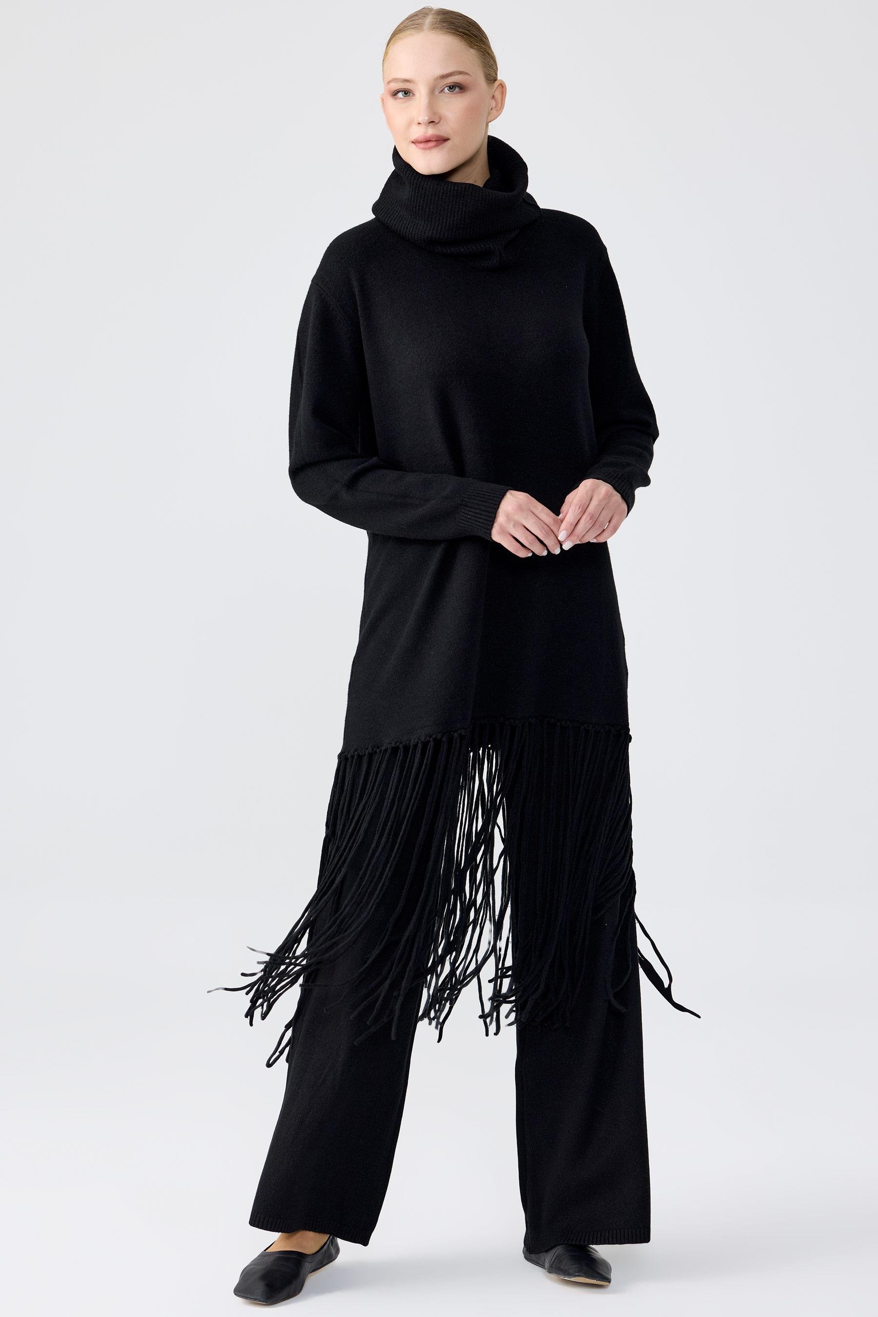 Seyyar Balıkcı Yaka Püsküllü Pantolonlu Triko Takım SİYAH (TKM.22010.1)