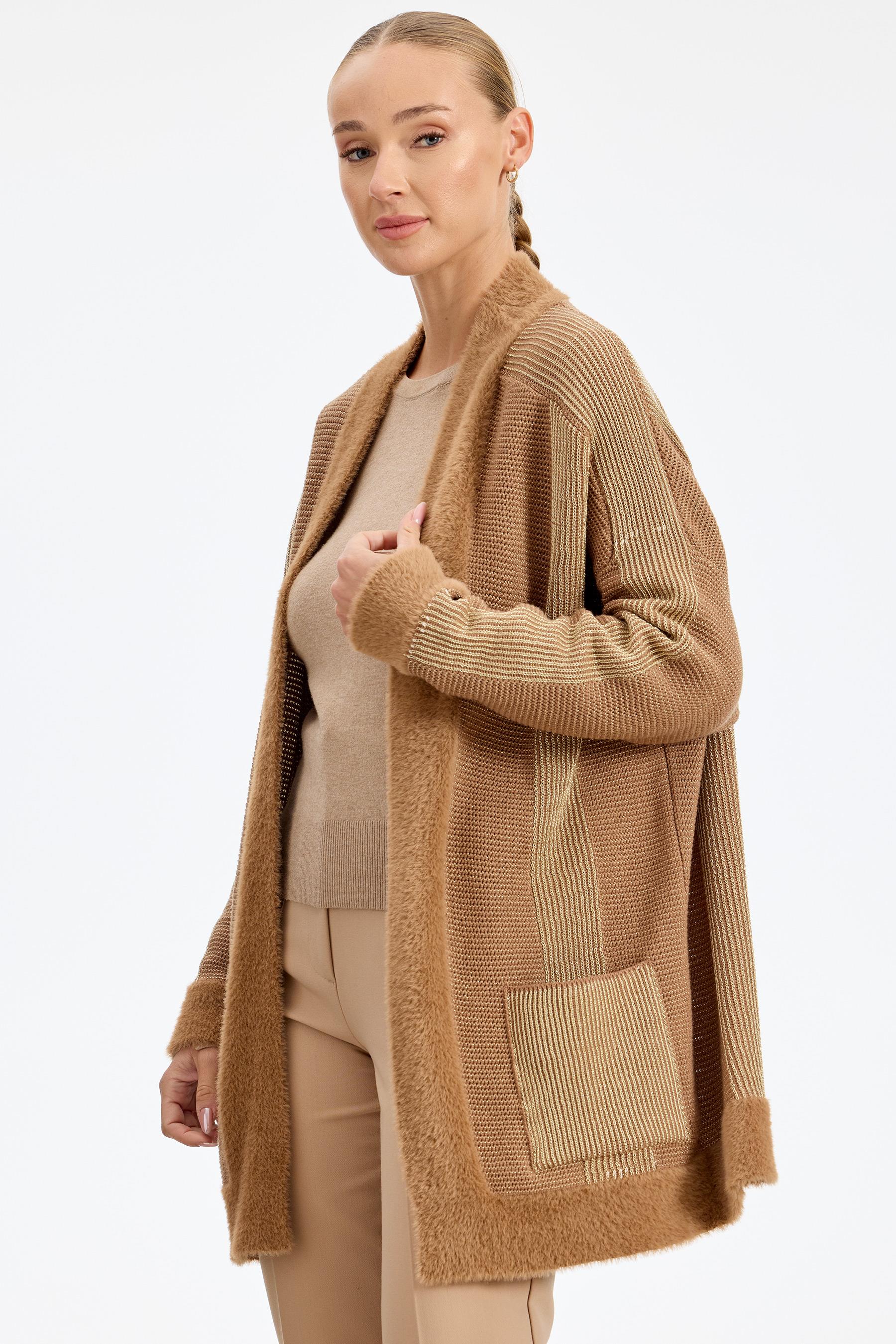 Sim ip Detaylı Triko Hırka CAMEL GOLD