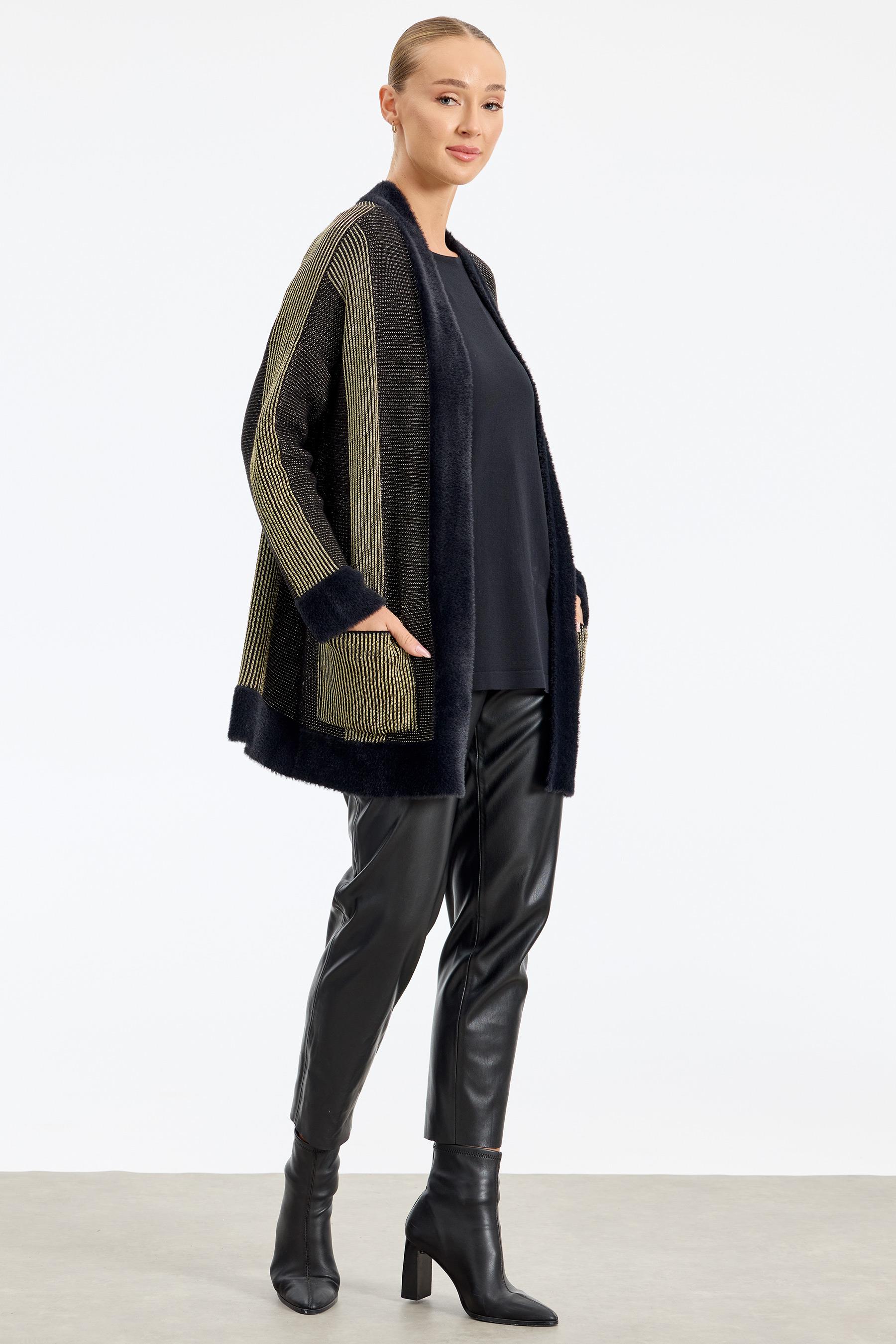 Sim ip Detaylı Triko Hırka SİYAH-GOLD