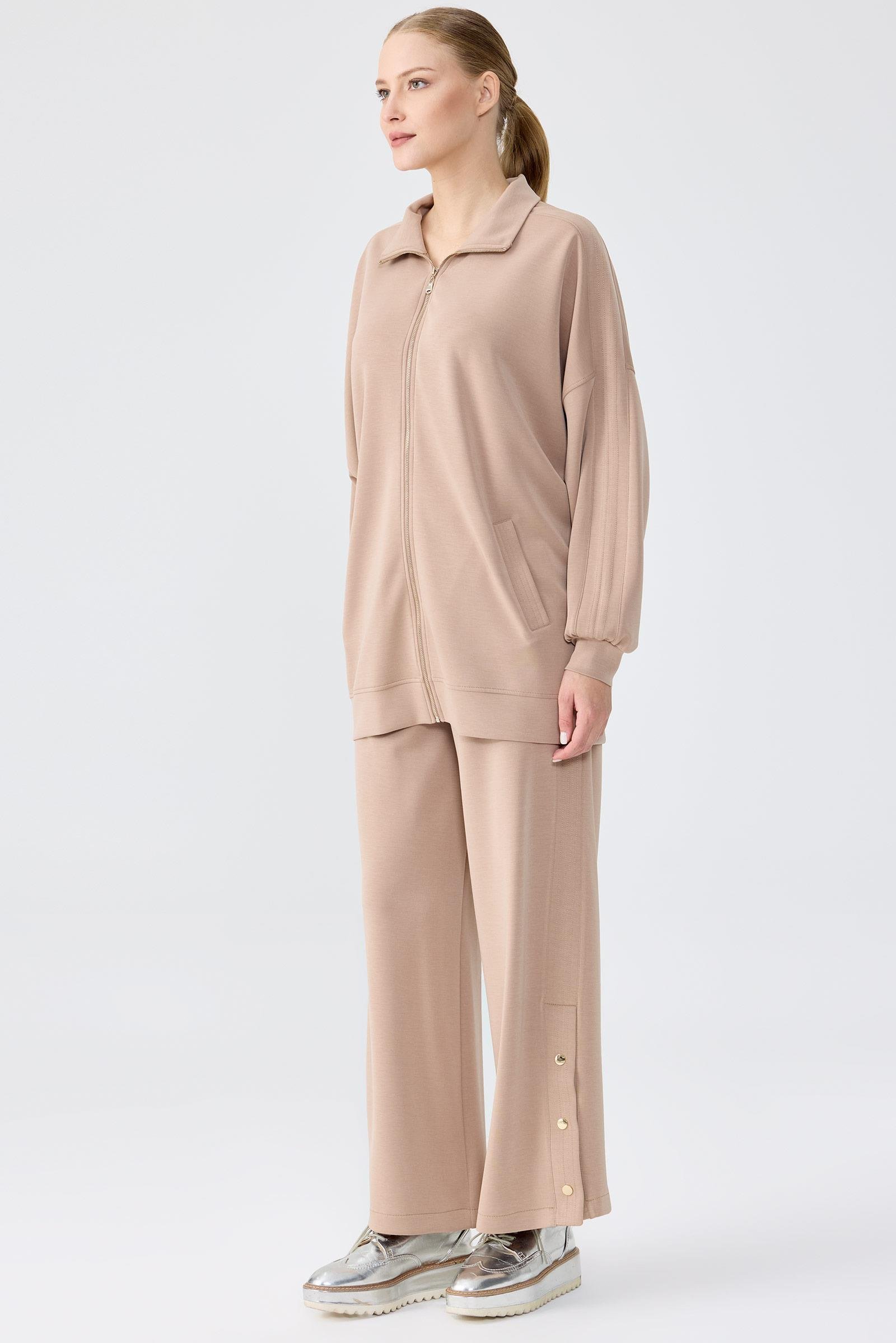Spor Dikiş Detaylı Paçaları Çıtçıtlı Takım CAMEL