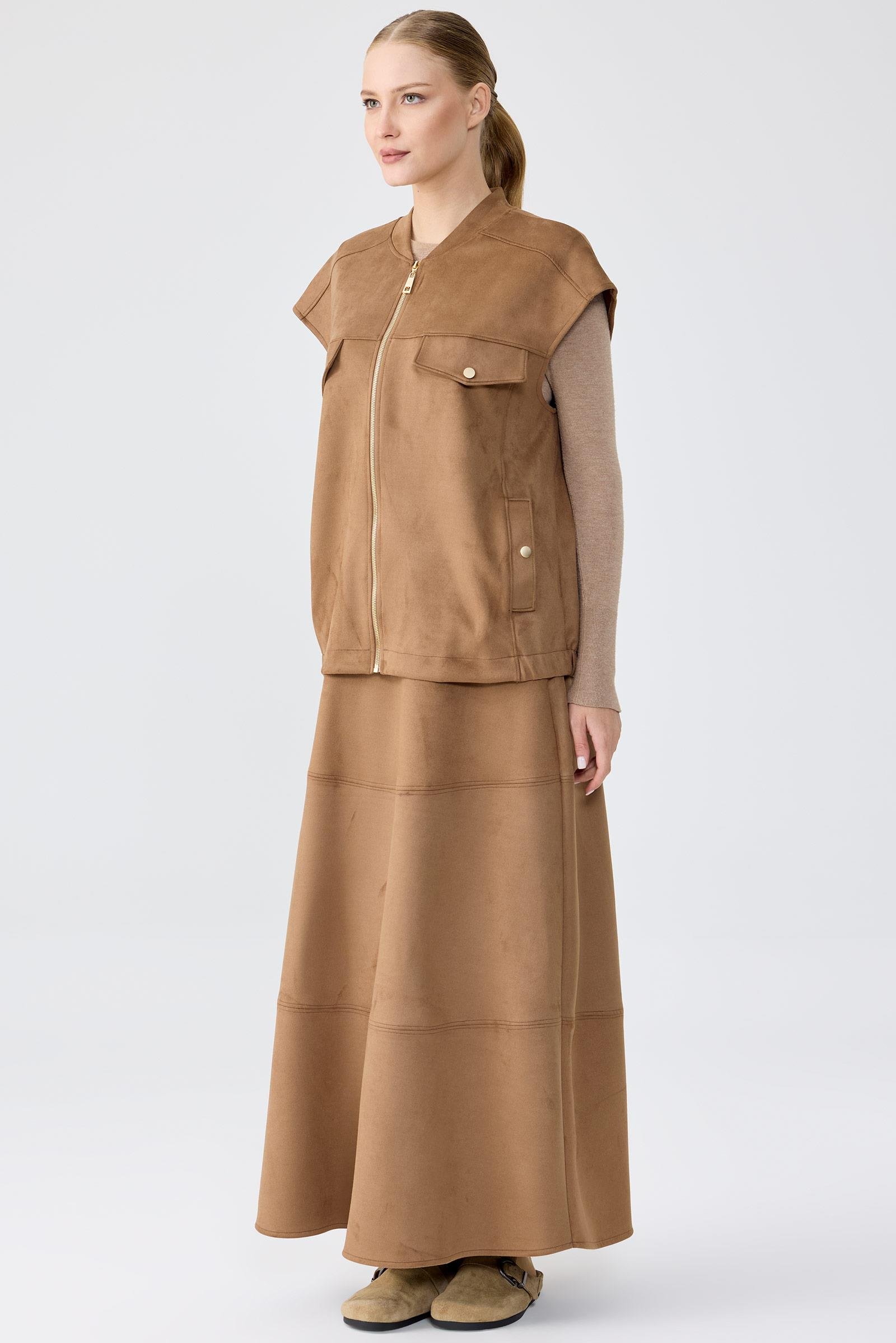Süet Yelek Kloş Etek Takım CAMEL (TKM.5013.01)