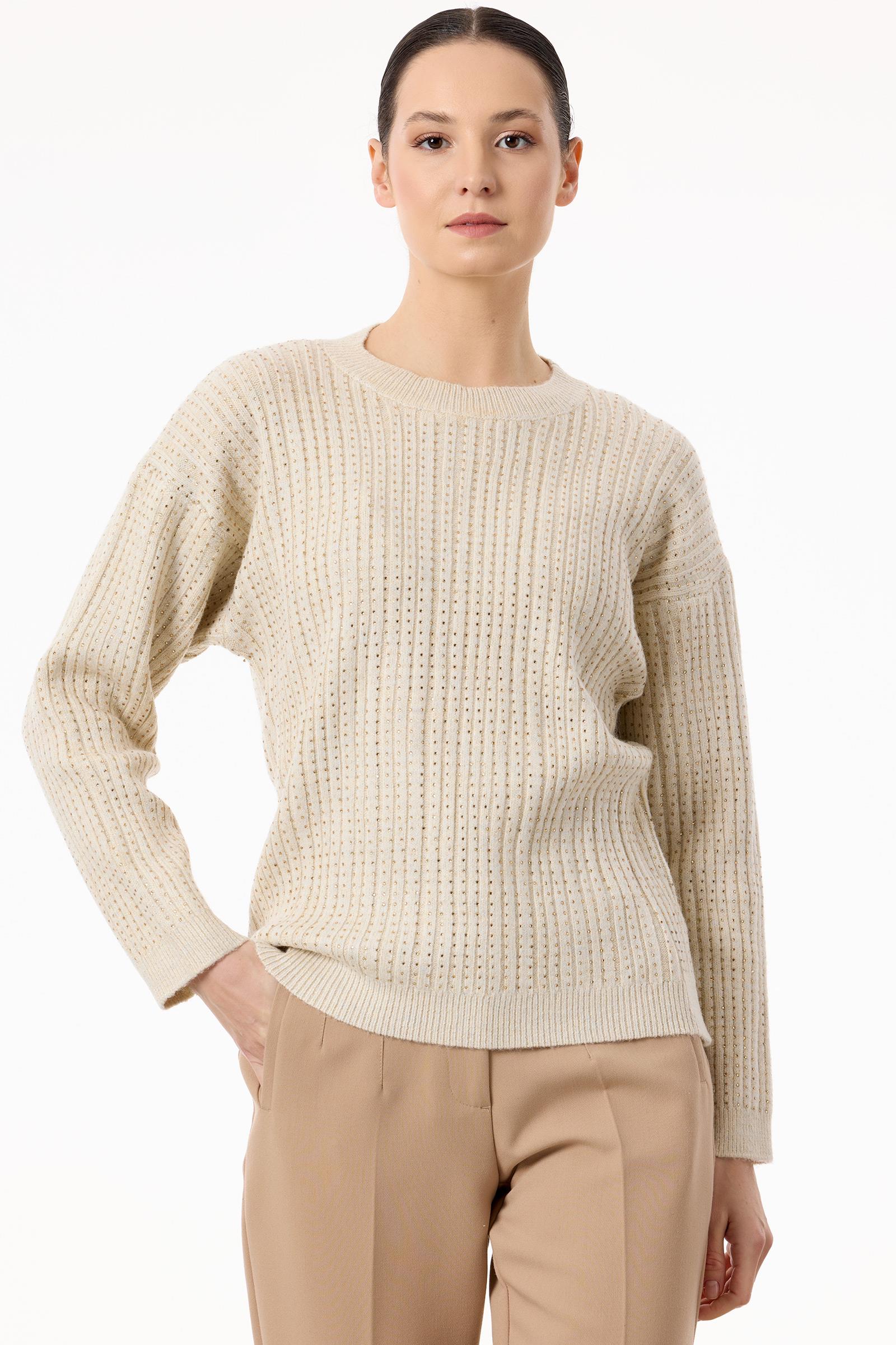Taş Baskılı Fitilli Triko Tunik BEJ