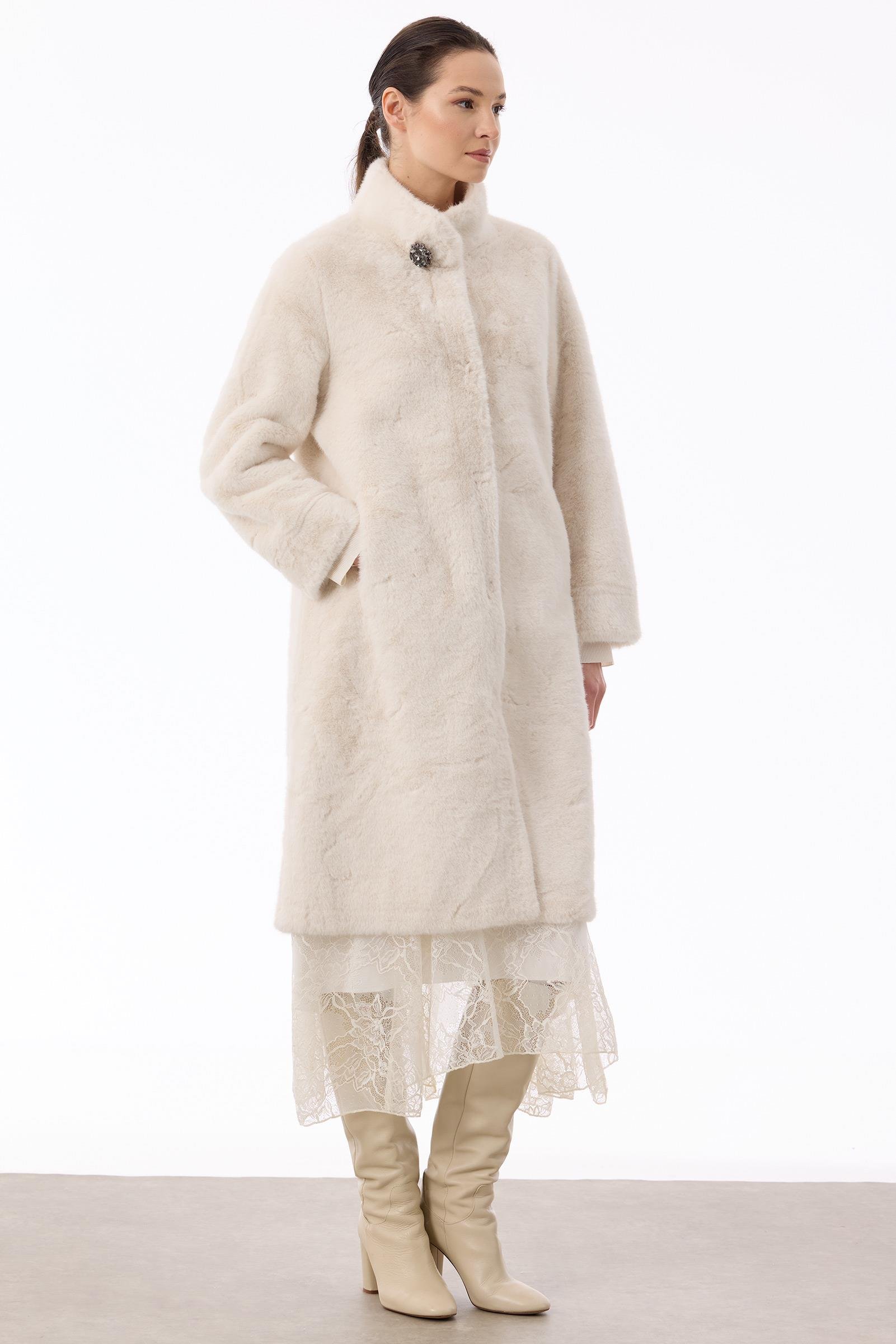 Yakası Broşlu Triko Kaban EKRU