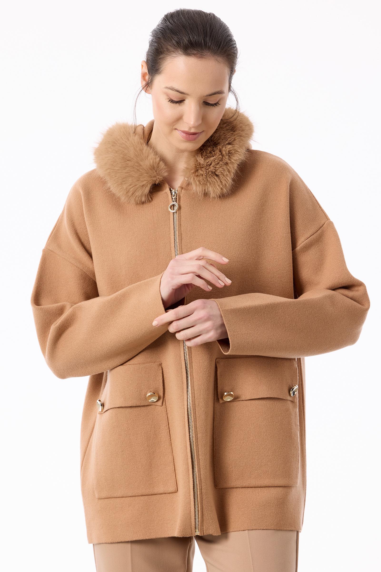 Yakası Kürklü Hırka CAMEL