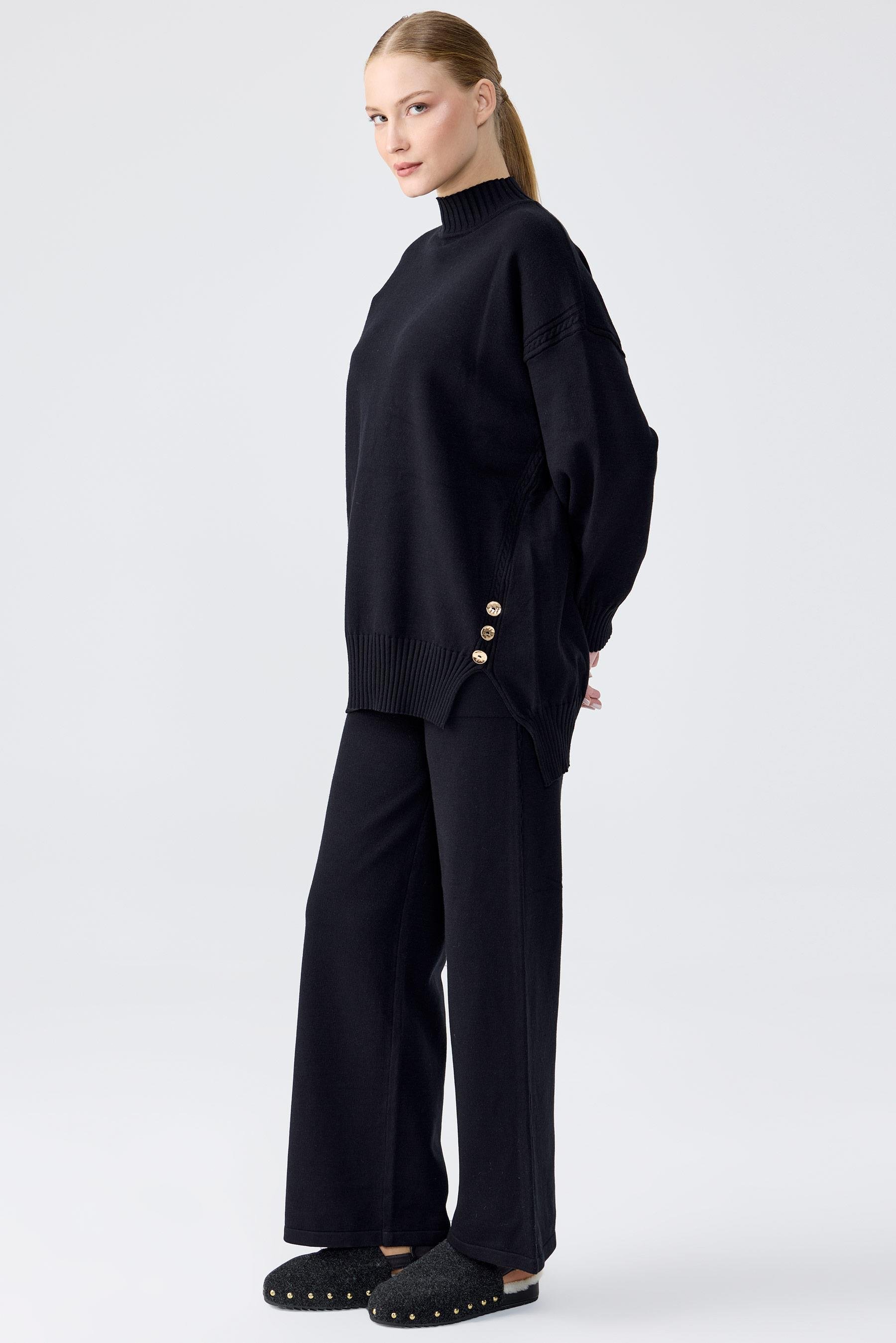Yanları Düğmeli Tunik Pantolon Takım SİYAH (TKM.22003.1)