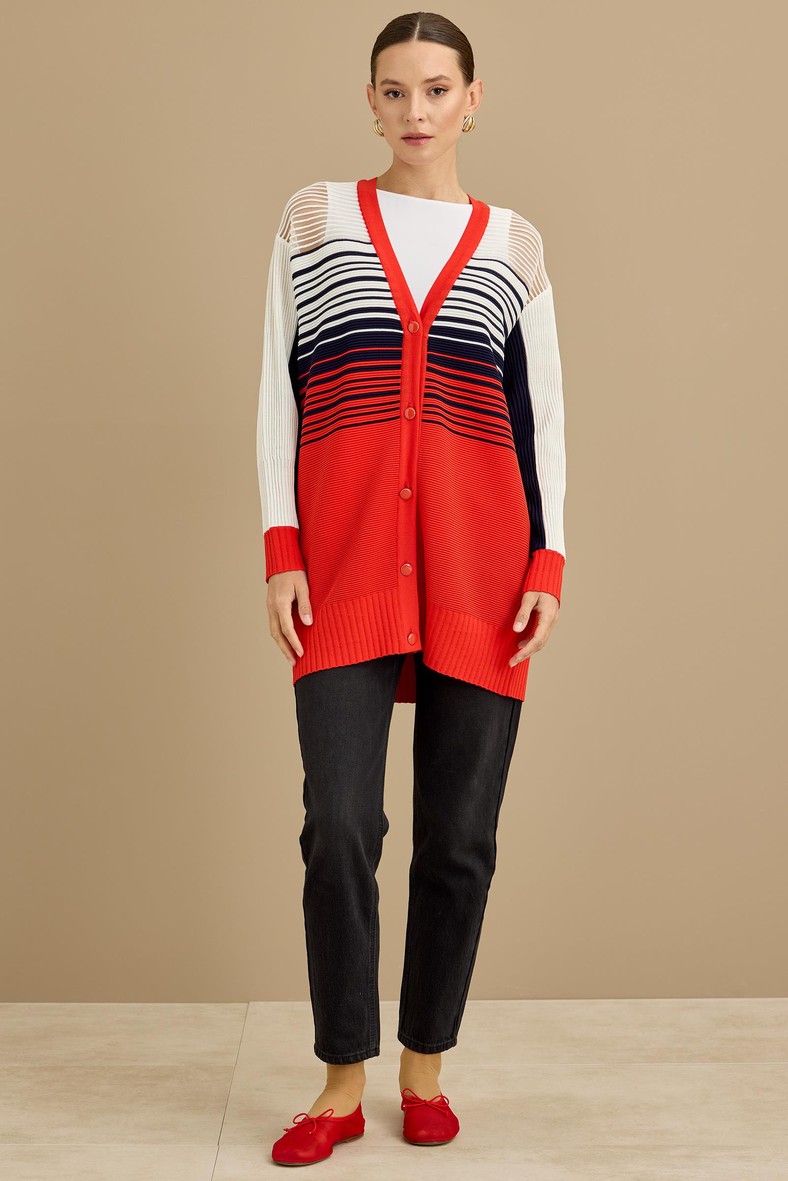 Yığma Detaylı Rayon Hırka KIRMIZI