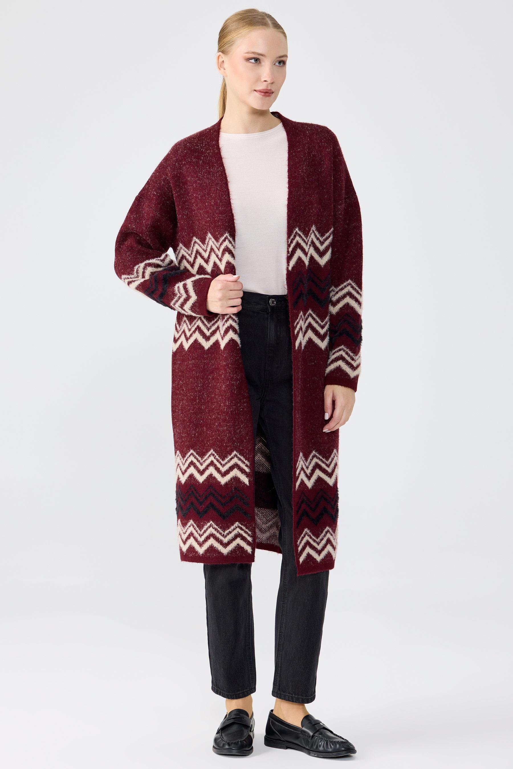 ZİKZAK ÇİZGİ DETAYLI TRİKO HIRKA BORDO